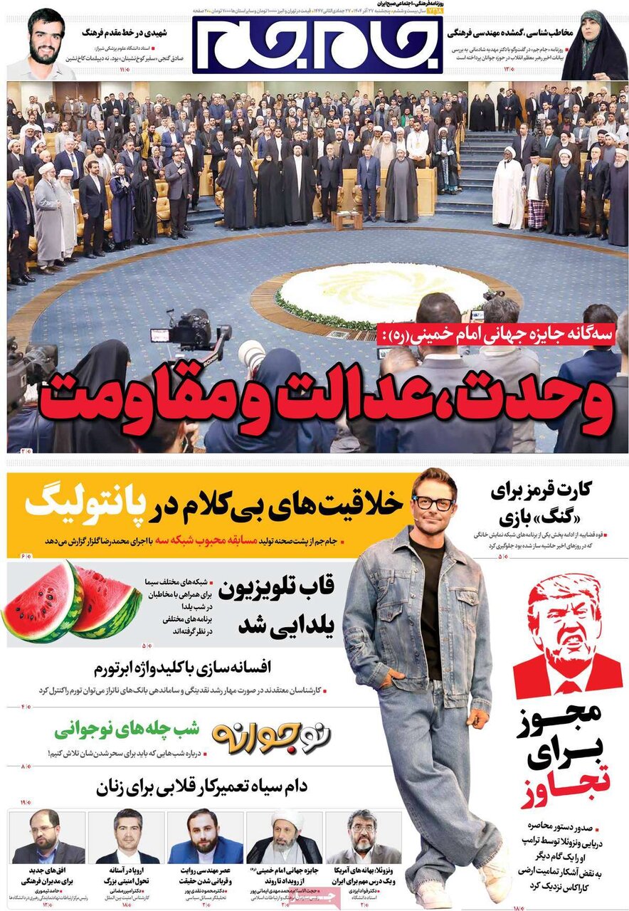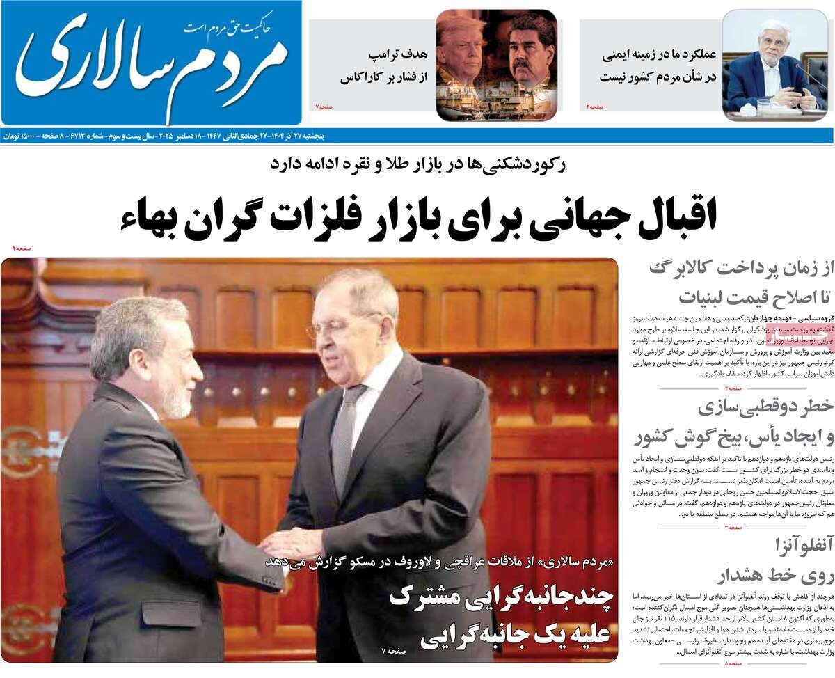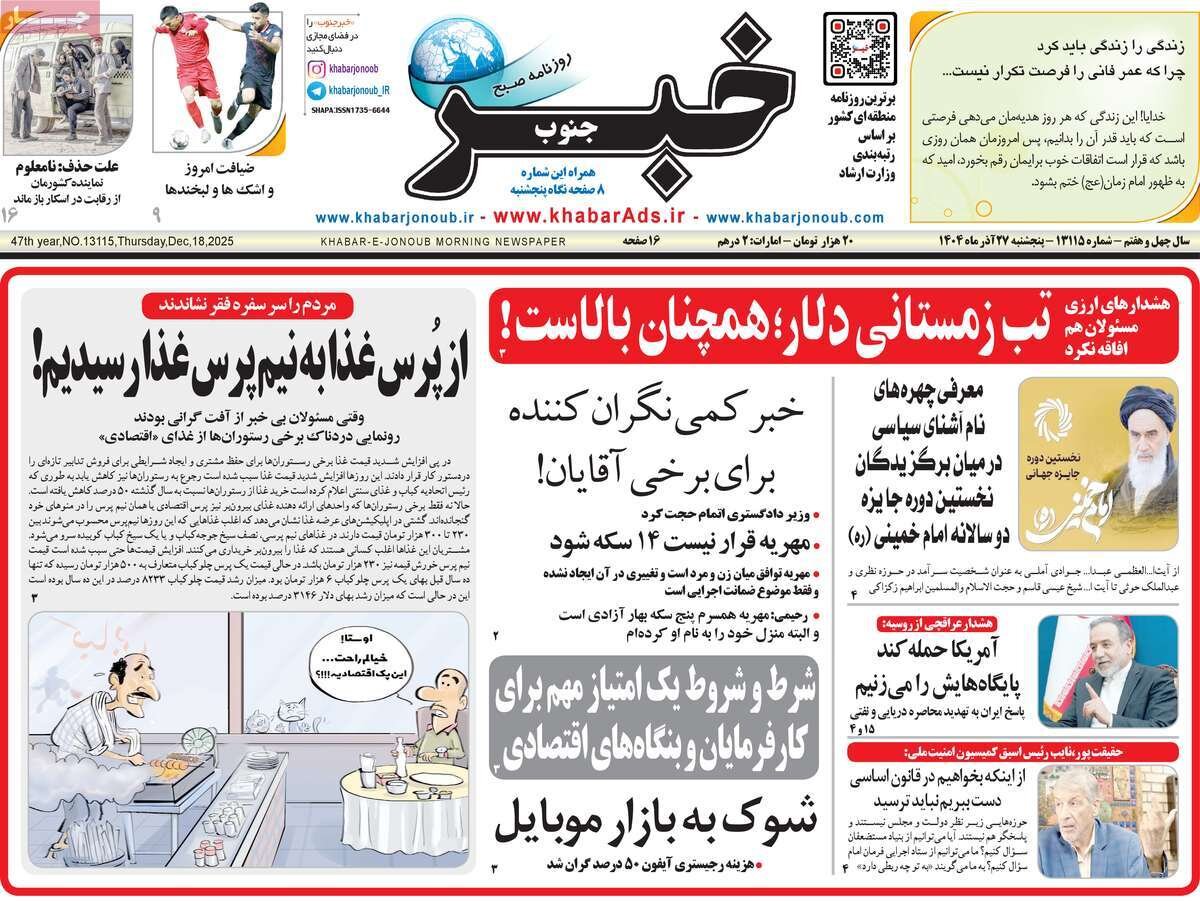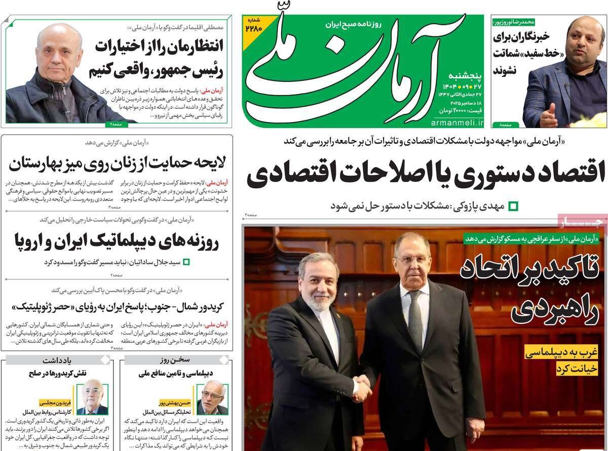 صفحه اول روزنامه های 5شنبه 27آذر 1404