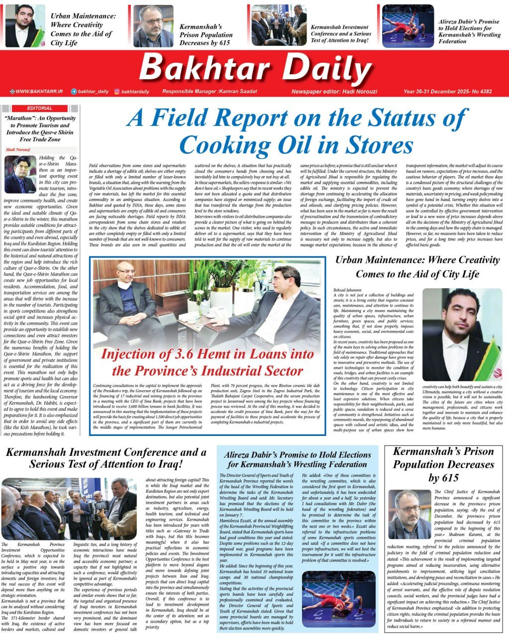 صفحه اول روزنامه‌های کرمانشاه چهارشنبه دهم دی ماه