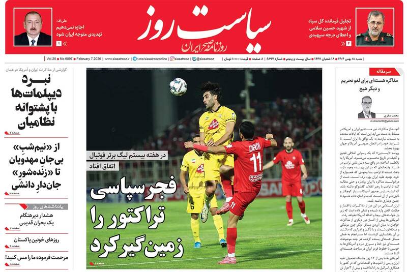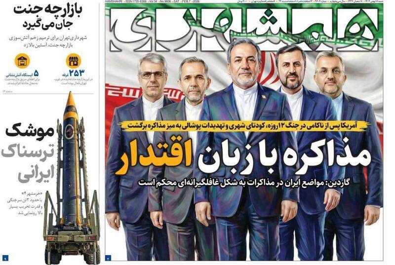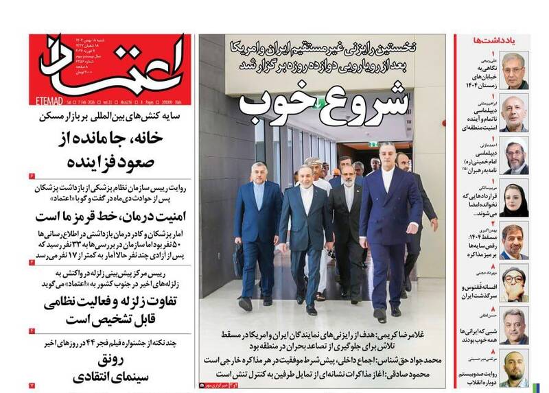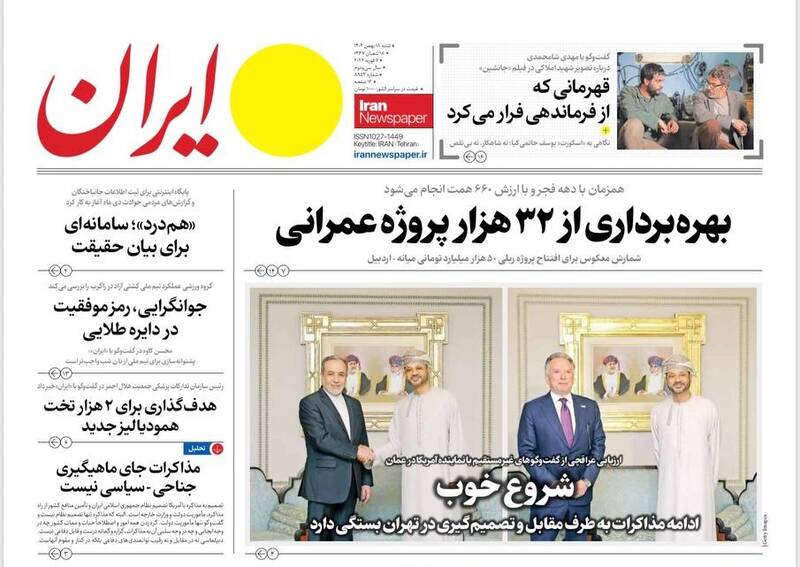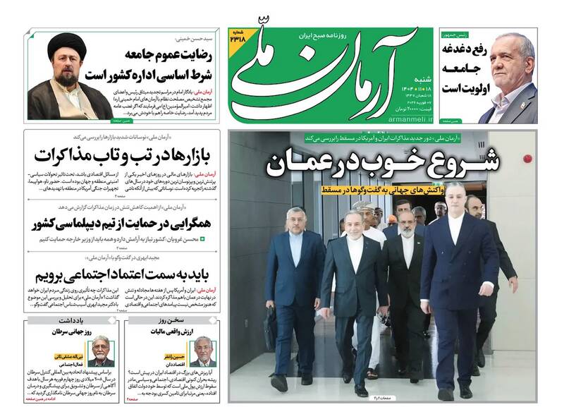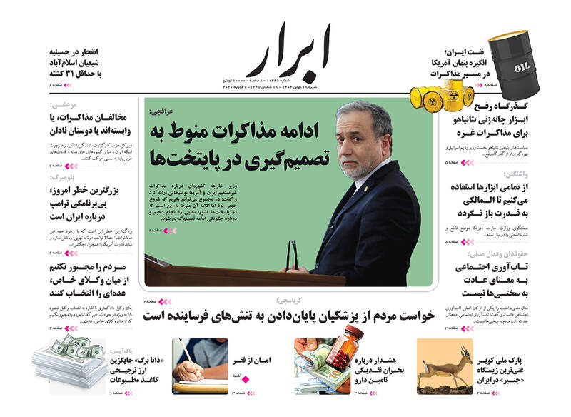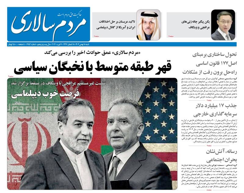 آمریکا قابل اعتماد نیست انگشتها روی ماشه بماند، توافق برای ادامه مذاکره، در مسقط چه گذشت، مذاکره در میدان، دیپلماسی عزتمند در عمان و...از جمله تیترهای روزنامههای شنبه ۱۸ بهمن ۱۴۰۴ هستند.