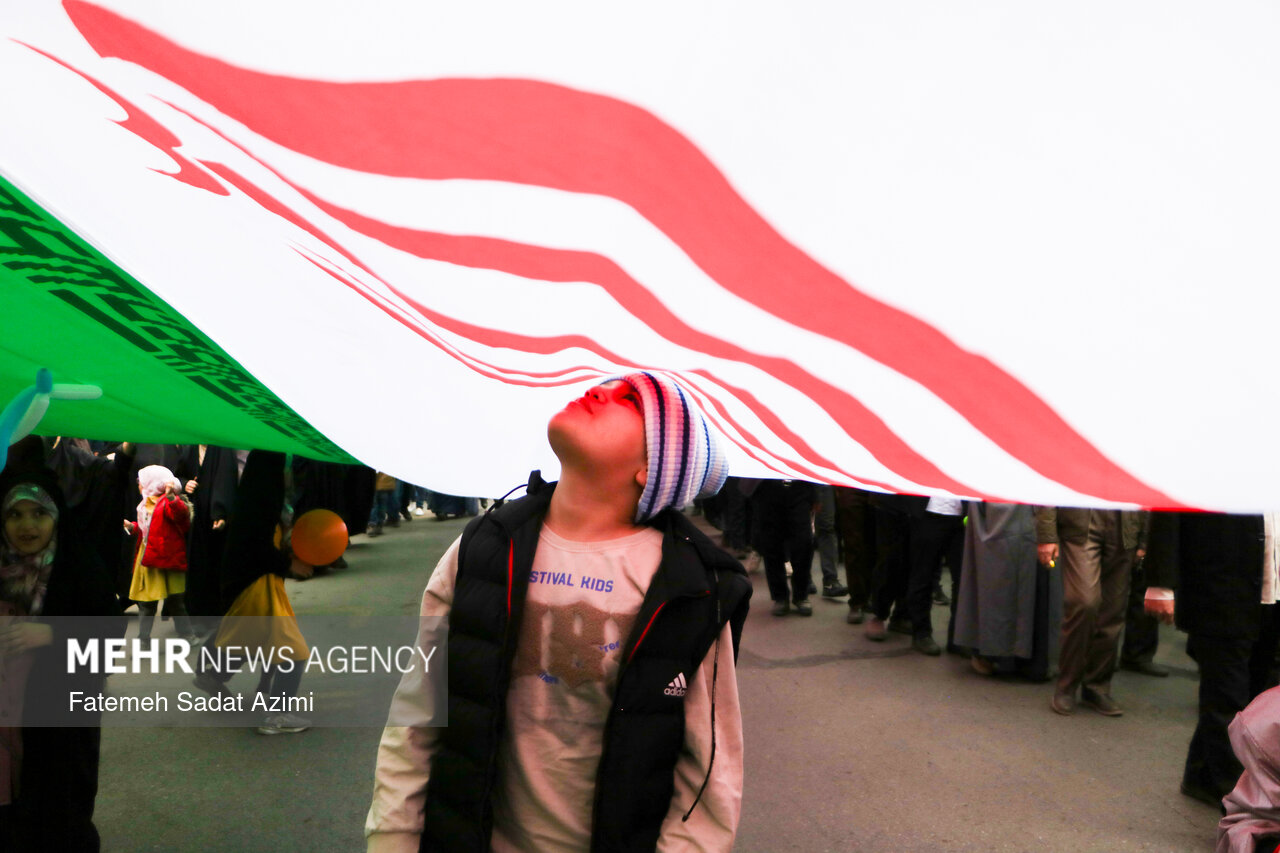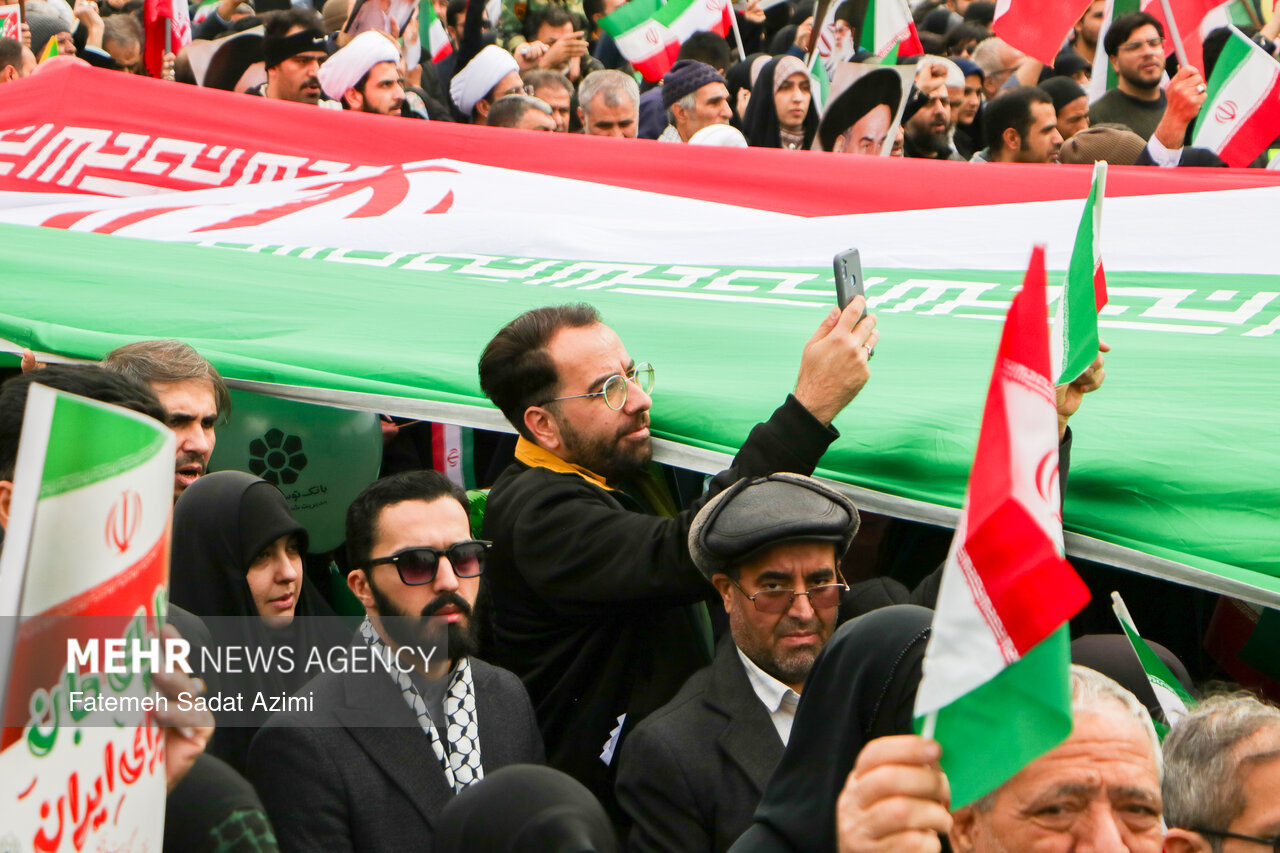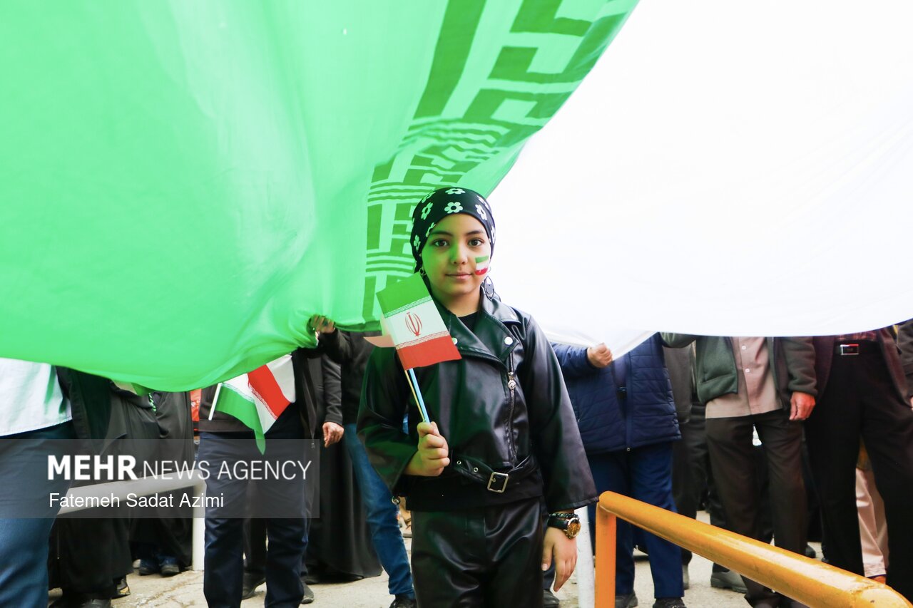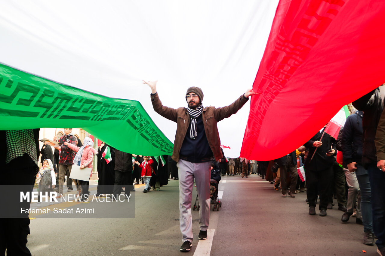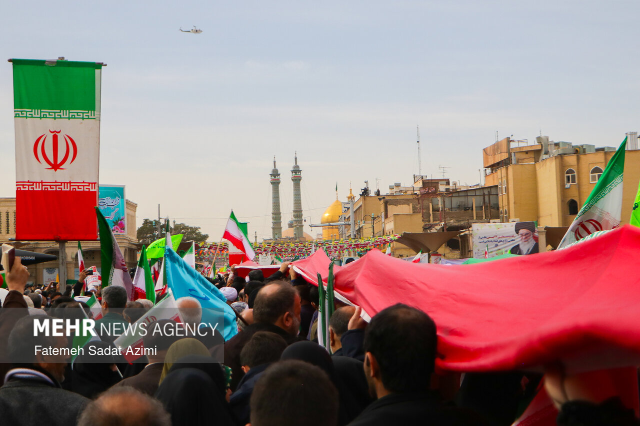 در راهپیمایی ۲۲ بهمن امسال قم نیز بسیاری از مردم همانند سال های گذشته پرچم ایران اسلامی در دست داشتند و برخی نیز پرچم های بزرگ سه رنگ کشورمان را با خود حمل کردند.