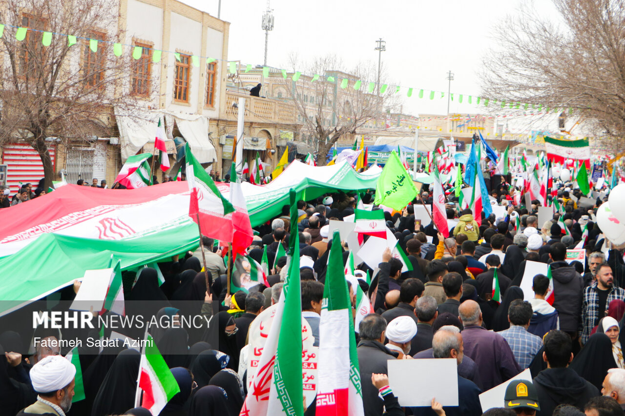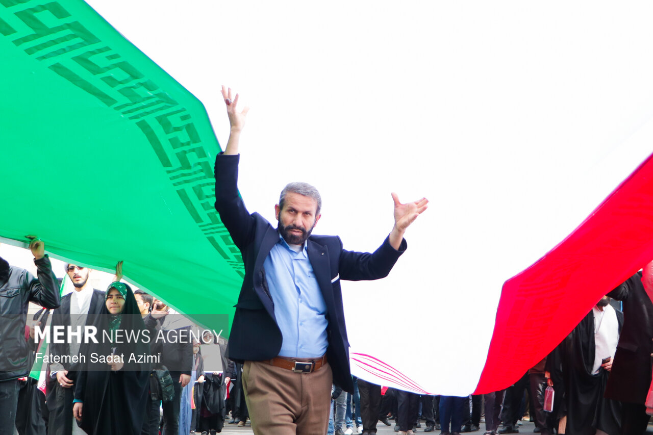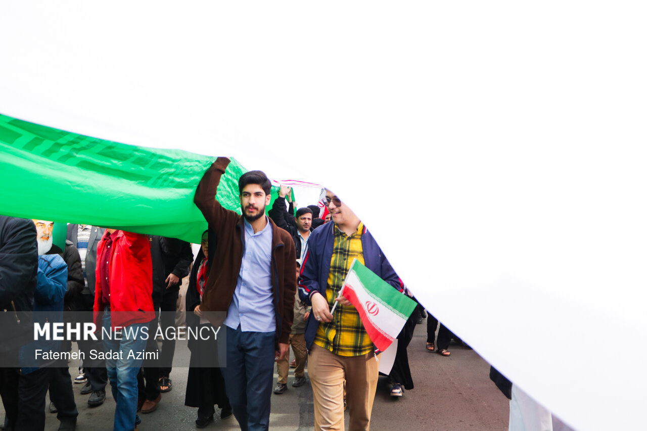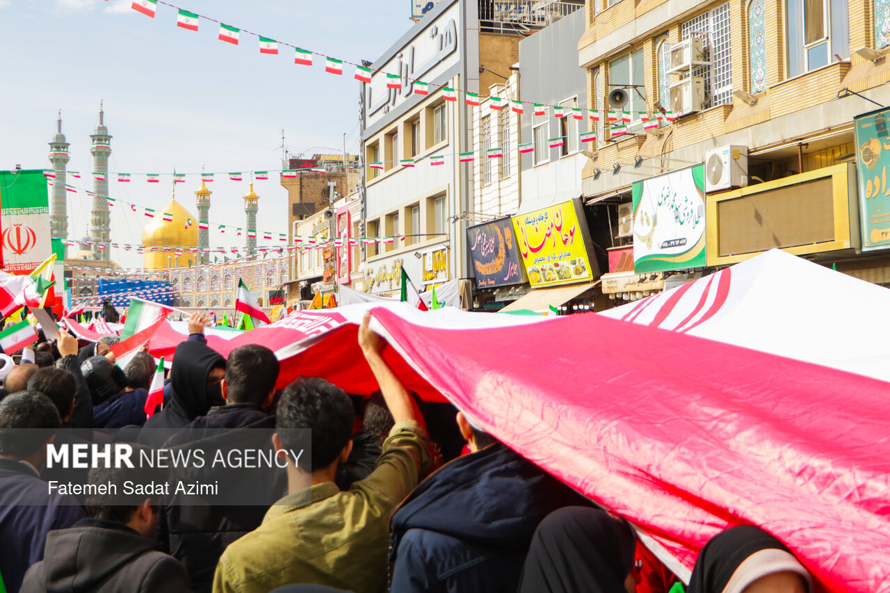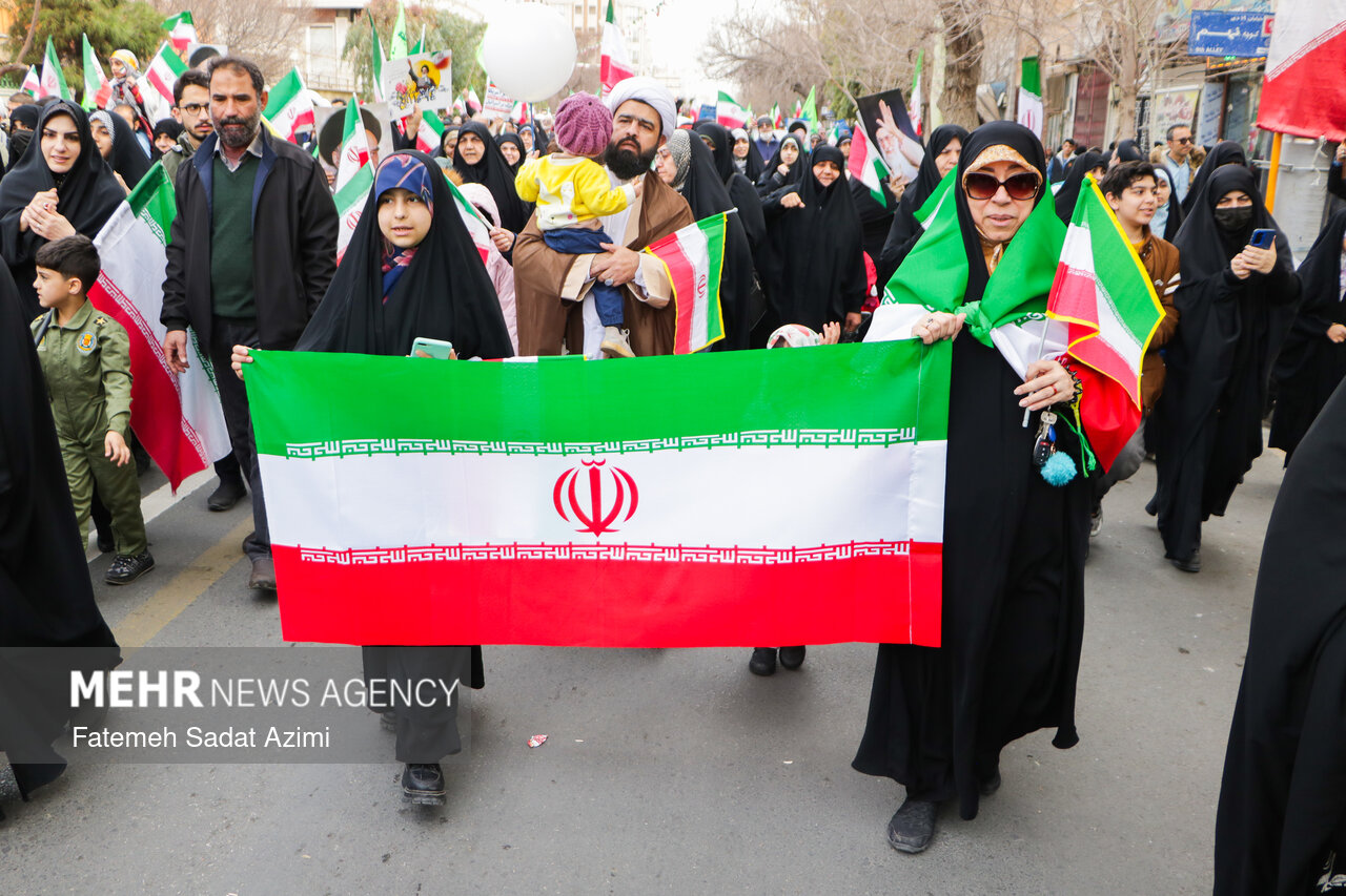 در راهپیمایی ۲۲ بهمن امسال قم نیز بسیاری از مردم همانند سال های گذشته پرچم ایران اسلامی در دست داشتند و برخی نیز پرچم های بزرگ سه رنگ کشورمان را با خود حمل کردند.