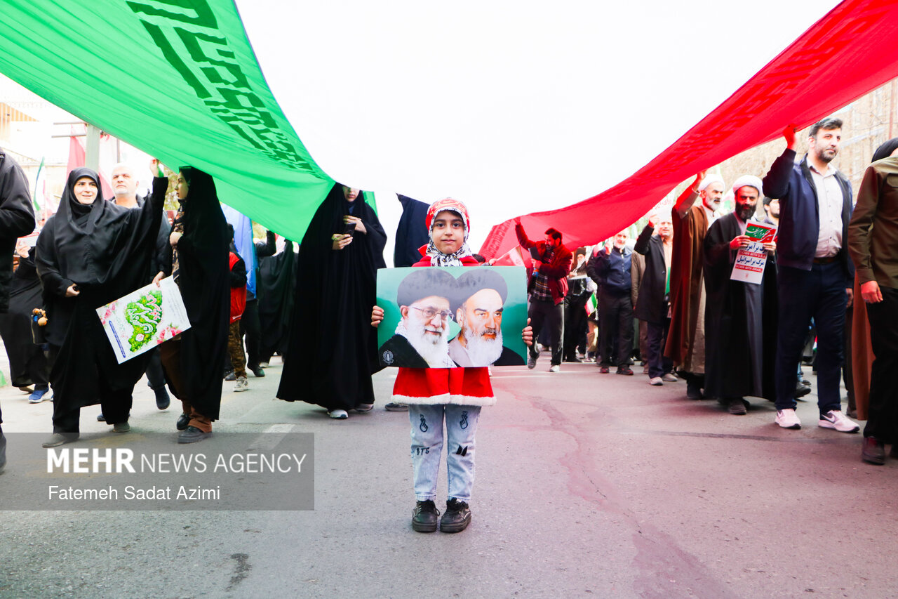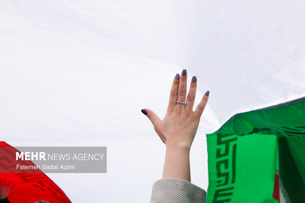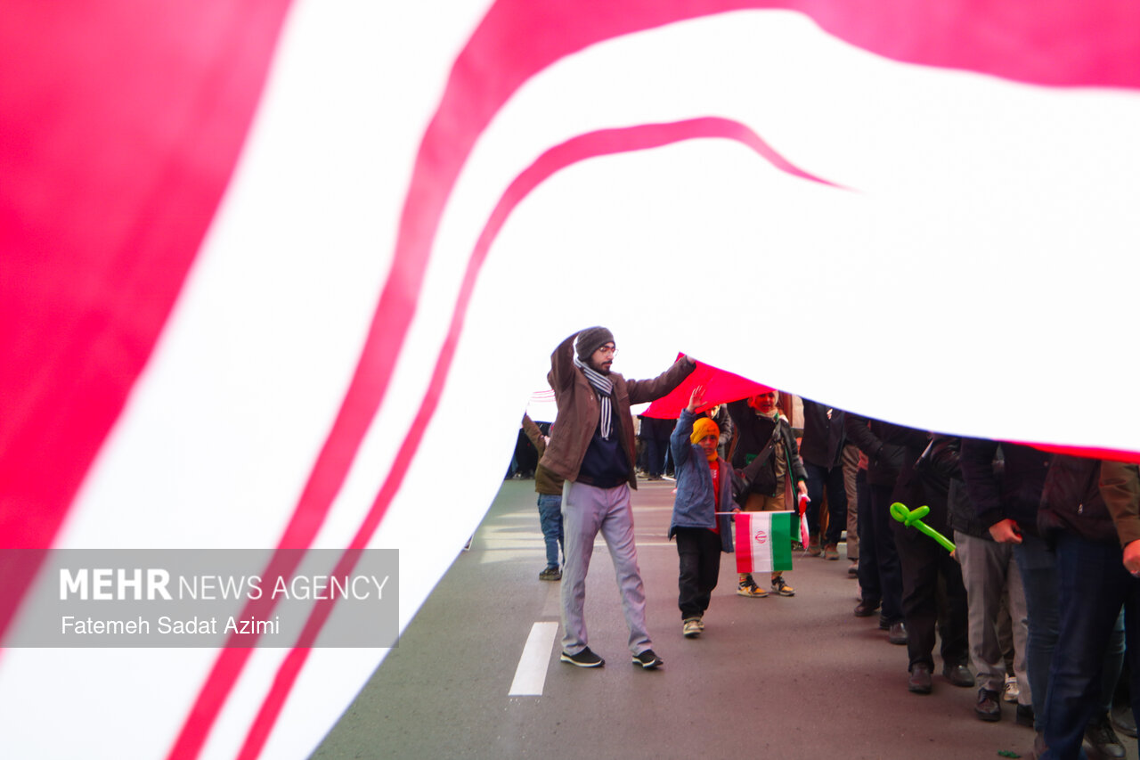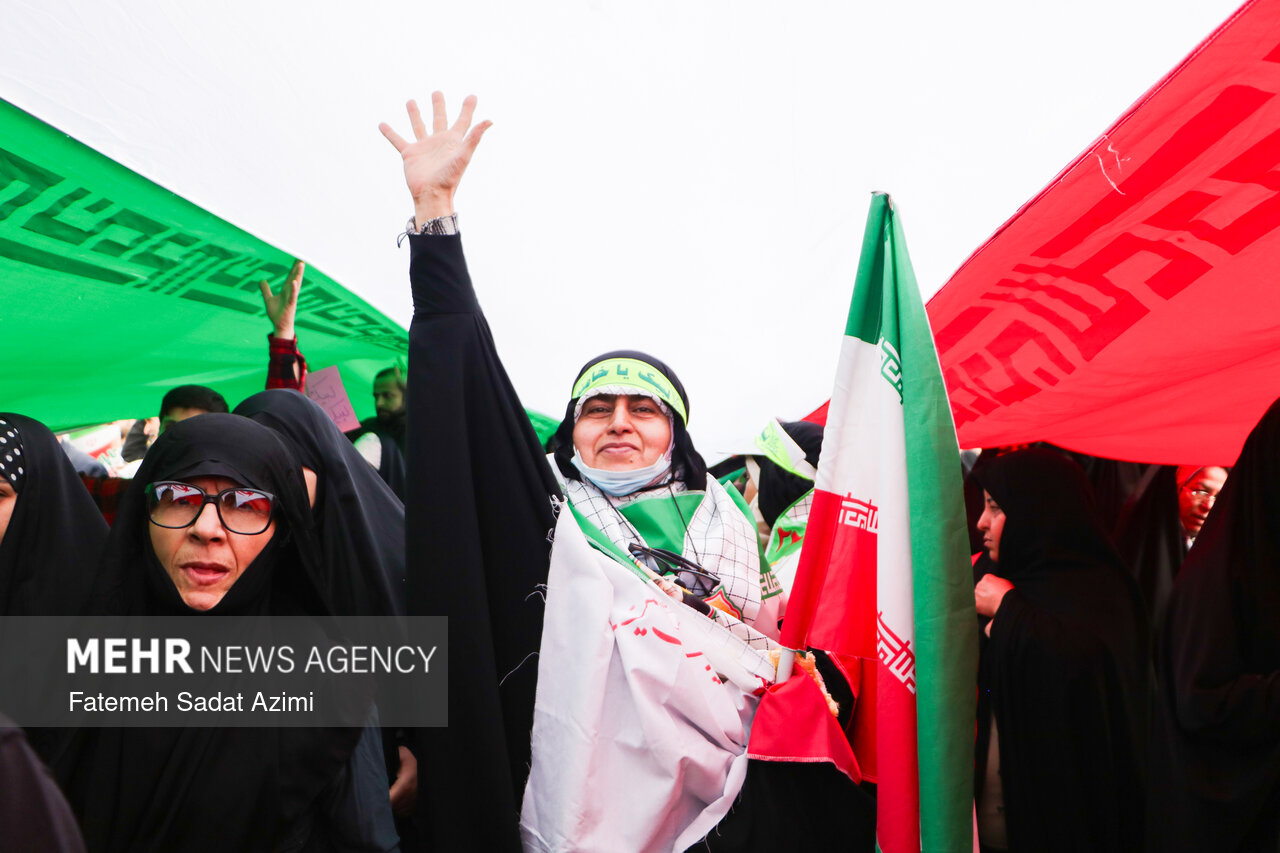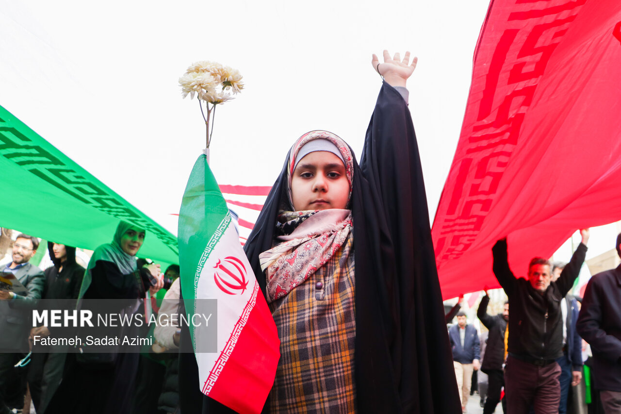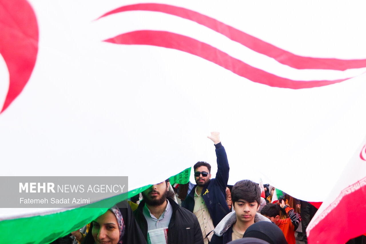 در راهپیمایی ۲۲ بهمن امسال قم نیز بسیاری از مردم همانند سال های گذشته پرچم ایران اسلامی در دست داشتند و برخی نیز پرچم های بزرگ سه رنگ کشورمان را با خود حمل کردند.