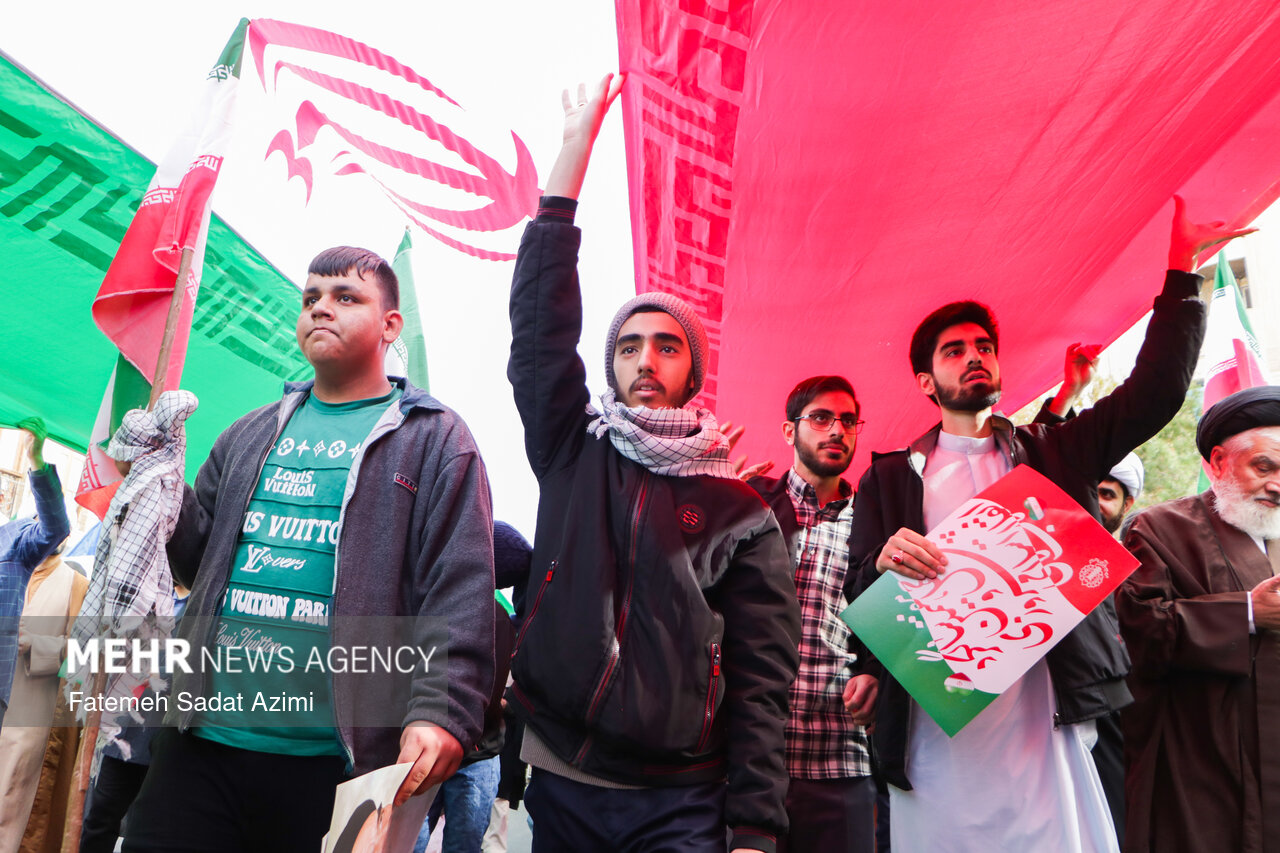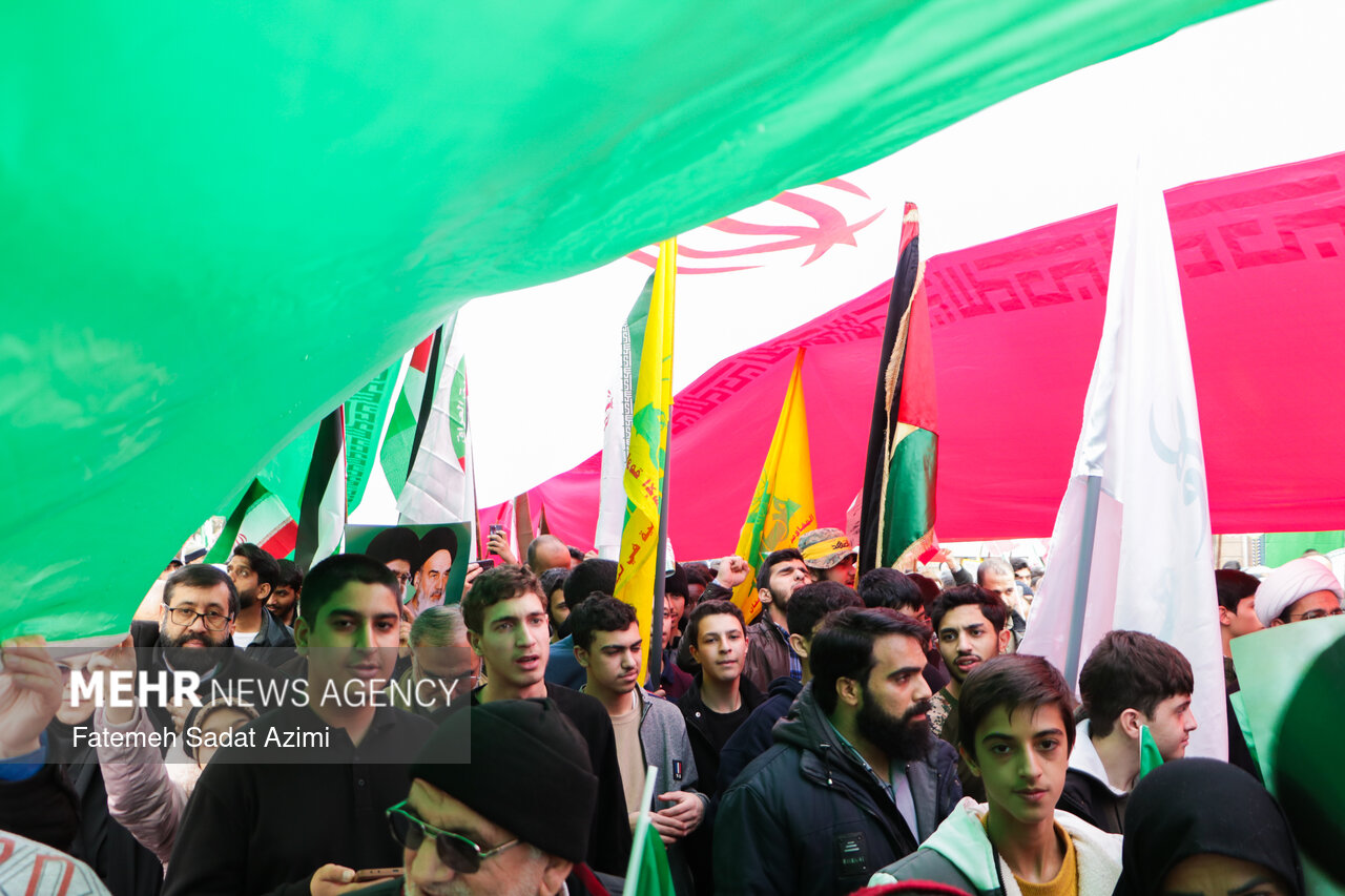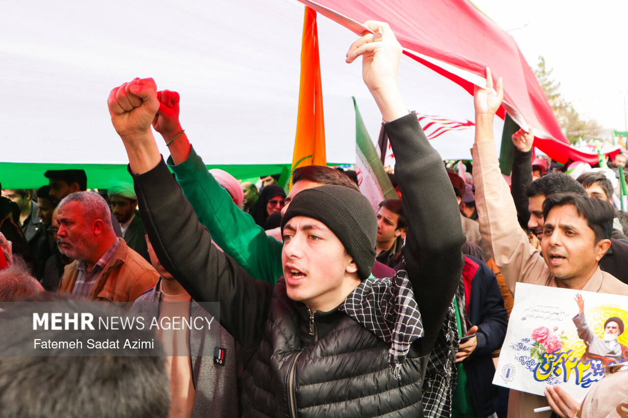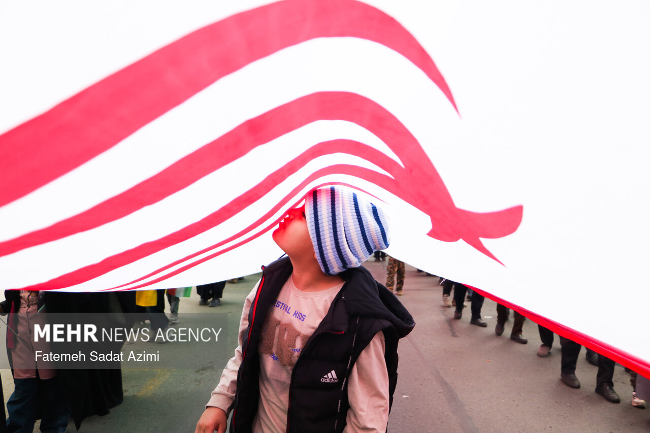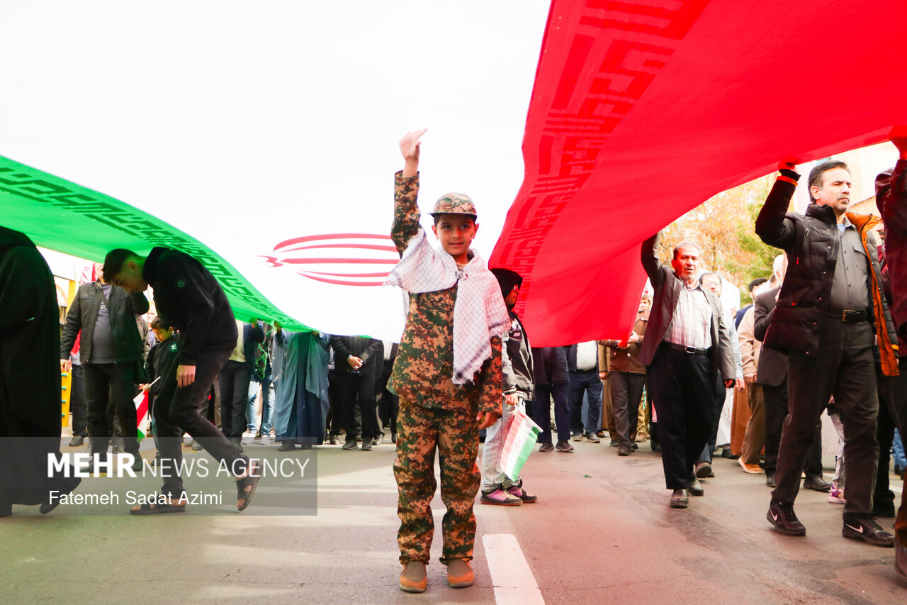 در راهپیمایی ۲۲ بهمن امسال قم نیز بسیاری از مردم همانند سال های گذشته پرچم ایران اسلامی در دست داشتند و برخی نیز پرچم های بزرگ سه رنگ کشورمان را با خود حمل کردند.