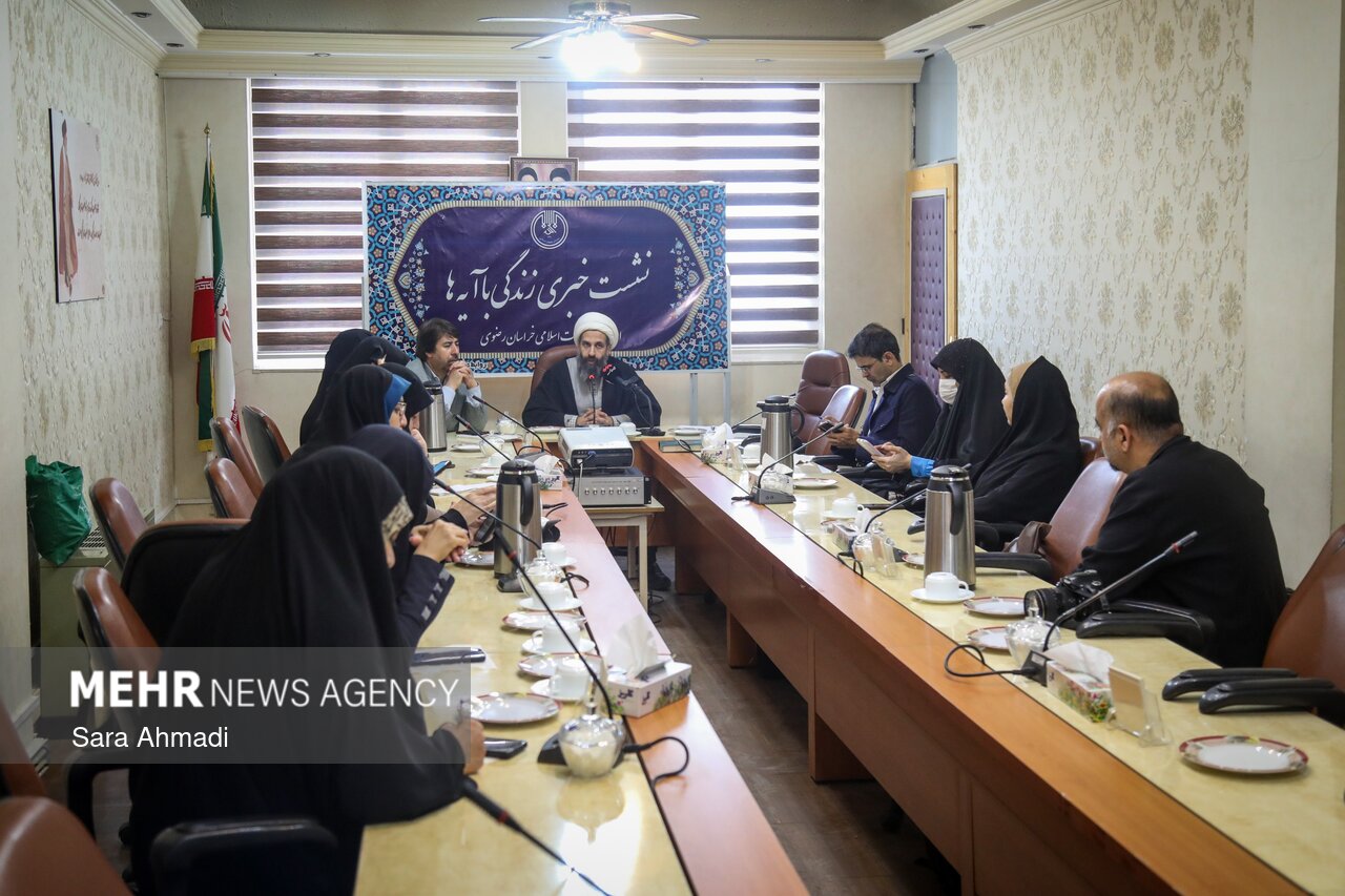 نشست خبری طرح ملی «زندگی با آیه ها» ظهر یکشنبه ۲۶ بهمن ماه ۱۴۰۴ با حضور حجت الاسلام هادی صاحبقرانی، مدیرکل تبلیغات اسلامی خراسان رضوی و جمعی از اصحاب رسانه این استان در راستای تشریح جزئیات این پویش ملی برگزار شد.