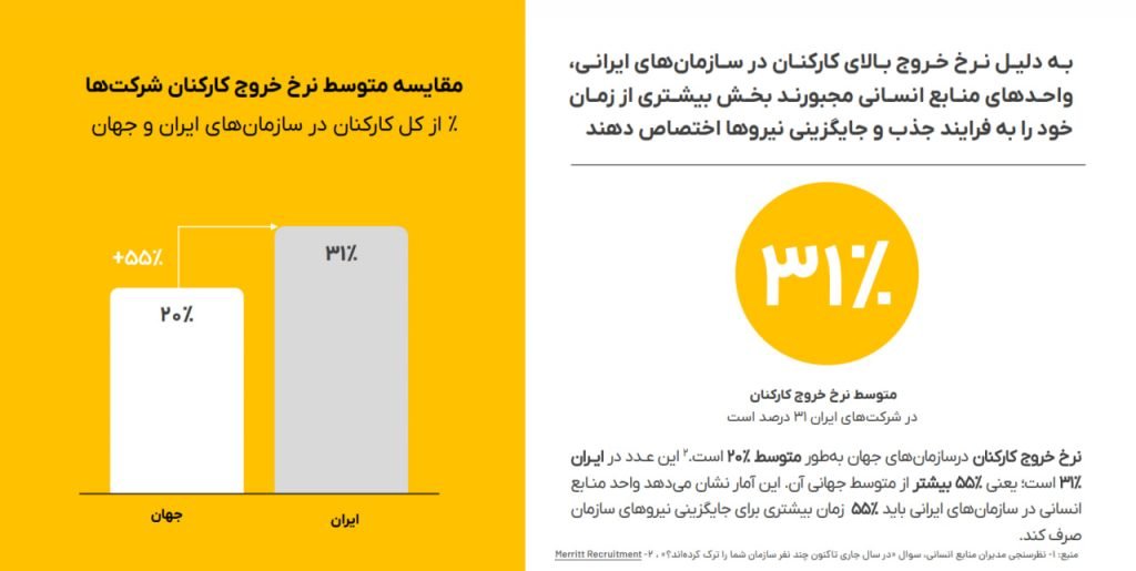 وقتی ۷۵ درصد از متخصصان منابع انسانی در پیدا کردن نیروی کار به بنبست میرسند و نرخ خروج کارکنان با رسیدن به عدد ۳۱ درصد، رکورد میانگین جهانی را با اختلافی ۵۵ درصدی میشکند، مشخص میشود که در چنین شرایطی سازمانها مدام درگیر پر کردن صندلیهای خالی هستند.