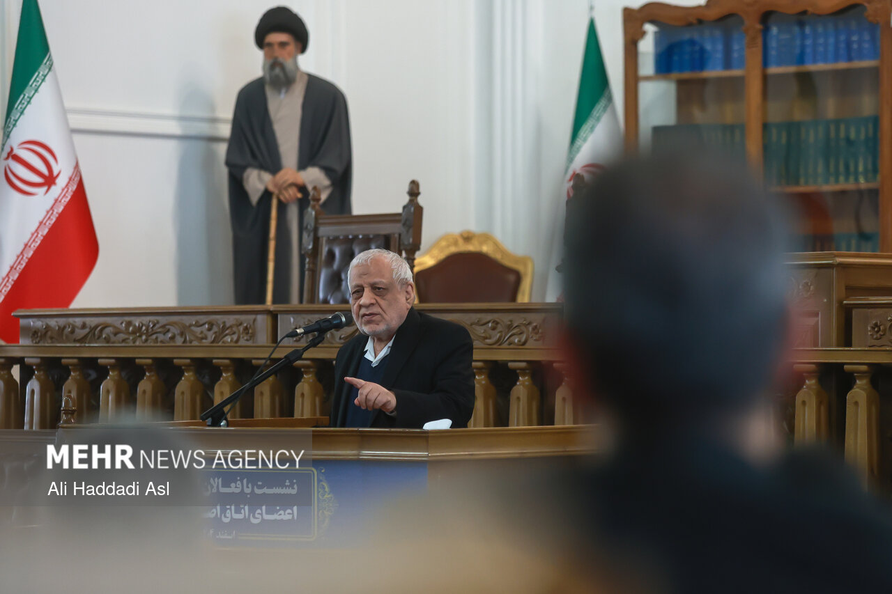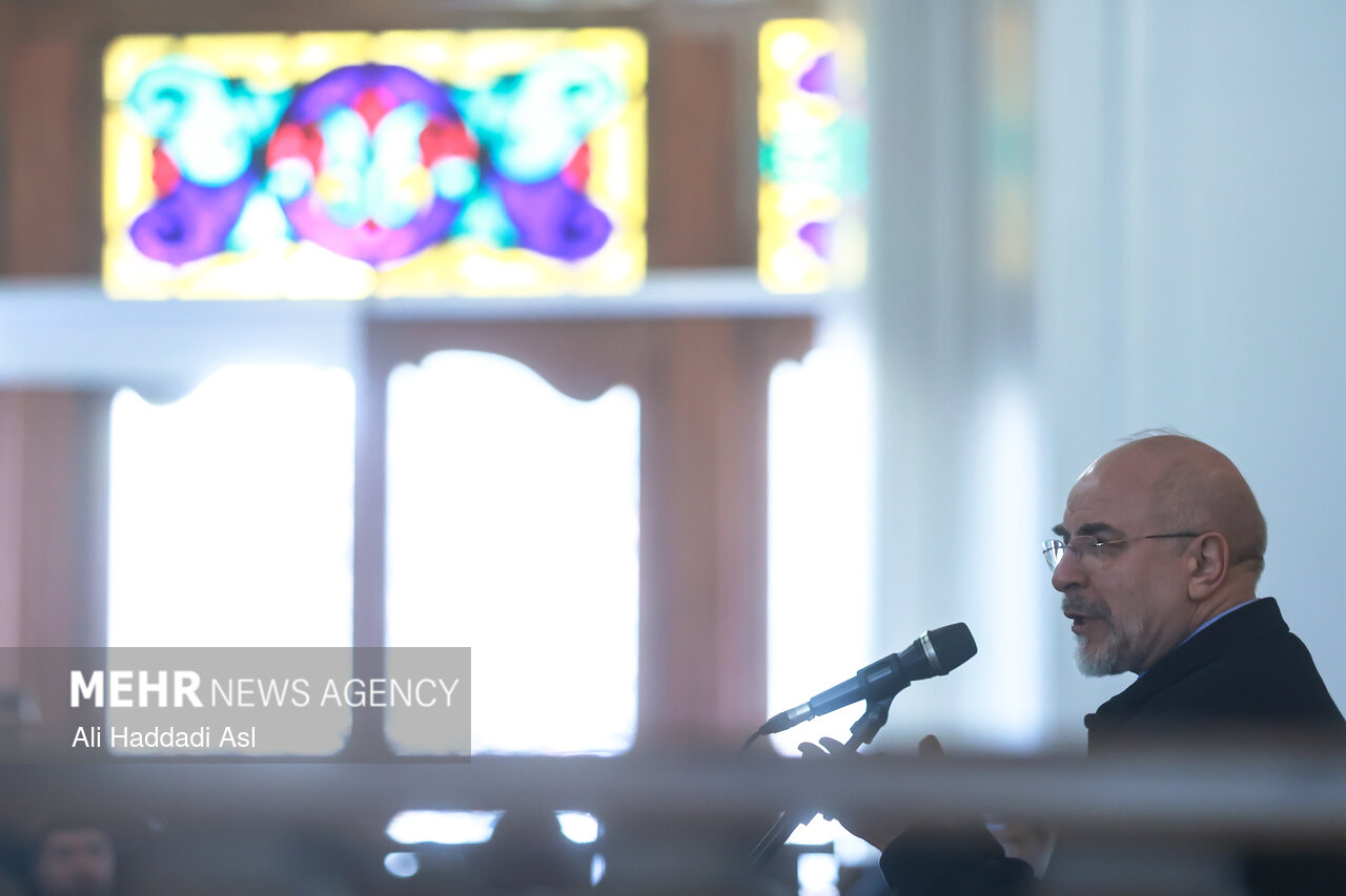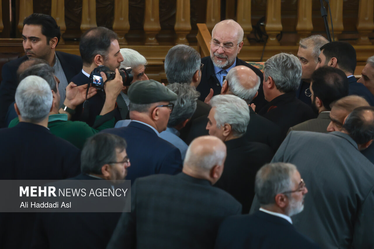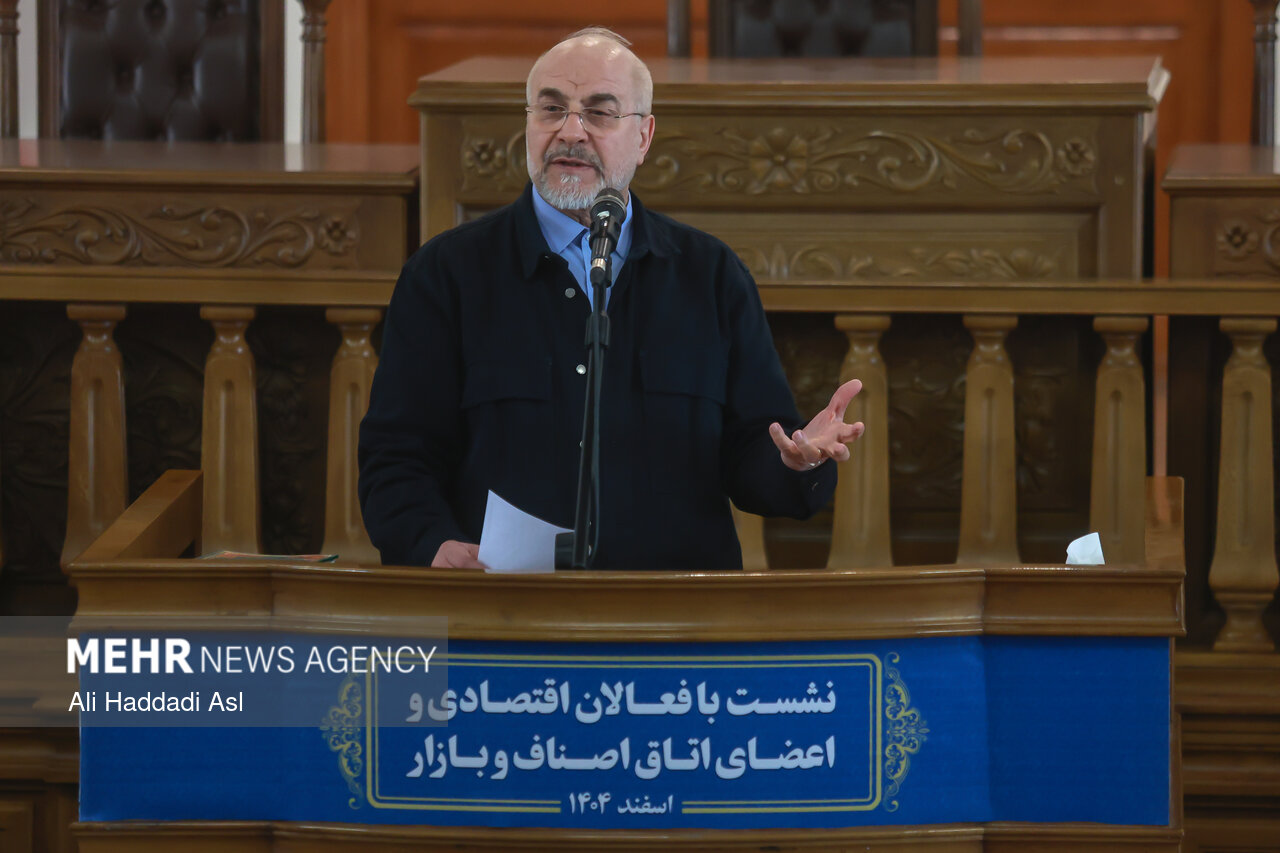 نشست تعدادی از فعالان اقتصادی بخش‌های مختلف کشور و اعضای اتاق اصناف و جمعی از بازاریان امروز چهارشنبه ۶ اسفند ۱۴۰۴ با حضور محمدباقر قالیباف رئیس مجلس شورای اسلامی در سالن مشروطه مجلس برگزار شد.