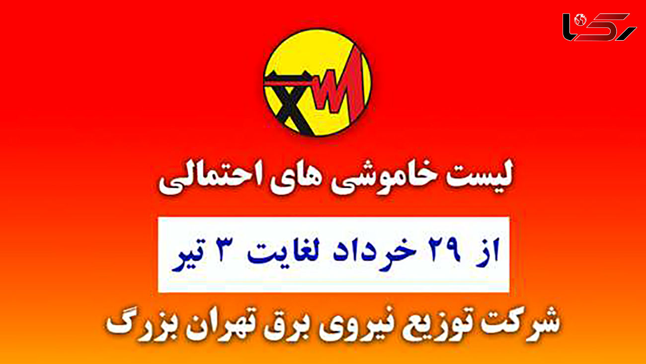 جدول خاموشی های برق تهران از تاریخ شنبه 29 خرداد ماه لغایت دوشنبه 3 تیر ماه 1400 اعلام شد.