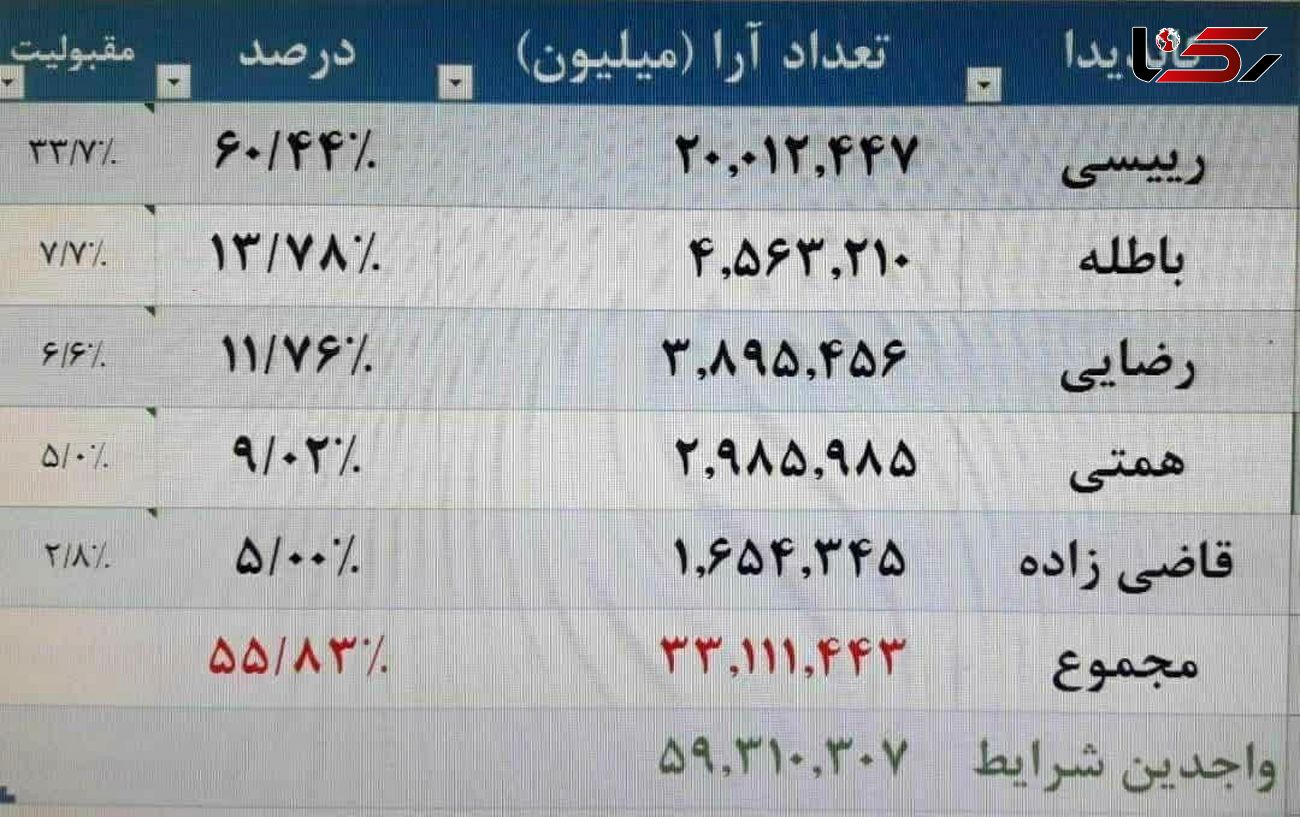 به گزارش رکنا ، یکی از کاربران شبکههای اجتماعی با دوستانش شرط میبندد که رییسی بیشتر از ۲۰ میلیون رای میآورد و برای نباختن شرط و ندادن جوجهکباب به دوستانش یک فایل جعلی ساخته و منتشر میکند.آخرین قیمت های بازار ایران را اینجا کلیک کنید.