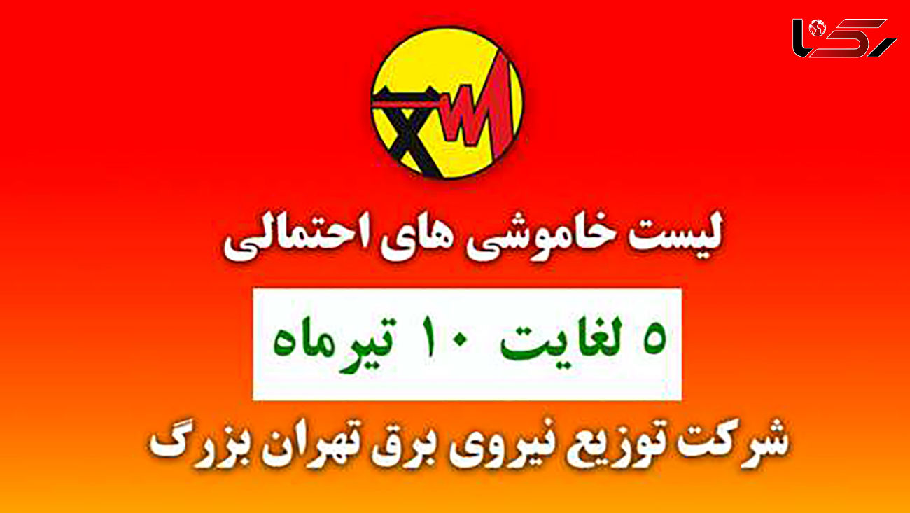 جدول خاموشی های برق شهر تهران اعلام شد. این جدول خاموشی های برق برای یک هفته از 5 تیر ماه تا 10 تیر ماه 1400 اعلام شده است. مردم می توانند با مراجعه به این جدول خاموشی های برق از نحوه زمان بندی قطعی برق آگاه شوند. شرکت توزیع برق تهران هر هفته برای 7 روز جدول خاموشی های برق را اعلام می کند. جدول خاموشی های برق تهران را مشاهده کنید.
