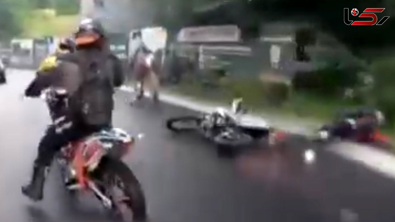 یک موتورسوار در جادهای لغزنده در اوکراین که قصد سبقت گرفتن از سمت راست یک موتورسیکلت دیگر را داشت با آن موتور برخورد کرد و نقش بر زمین شد و موتورش با یک اسب که در کنار خیابان در حال راه رفتن بود، برخورد کرد.