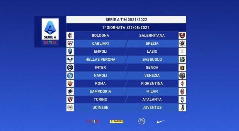 برنامه هفته اول لیگ ایتالیا بدین شرح است؛