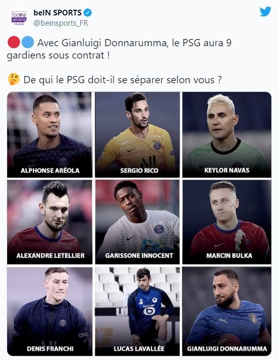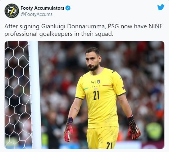 "پس از امضای قرارداد با جی جی دوناروما، PSG اکنون 9 دروازه بان حرفه ای در تیم خود دارد."