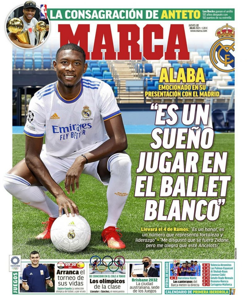 مراسم معارفه داوید آلابا که روز گذشته برگزار شد، سوژه اصلی نشریات مادریدی برای کار کردن صفحه اصلی شان بوده است. مارکا و آاس با انتشار نقل قول هایی از ستاره اتریشی در مراسم معارفه خود، به این مسئله پرداخته اند.