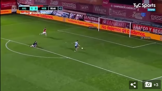 نیکولاس رنیرو، مهاجم تیم آرژانتینوس موقعیت فوق العاده ای را در دیدار مقابل نیوولز اولد بویز از دست داد.