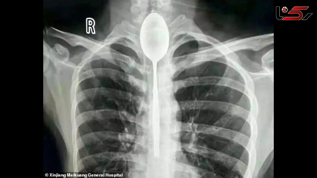 مرد چینی قاشق فلزی 8 اینچی را به عنوان یک شیرین کاری احمقانه در سال گذشته بلعید. قاشق در مری او گیر کرد، اما چون به راحتی می توانست بخورد و بنوشد، هرگز به دنبال کمک پزشکی برای بیرون آوردن آن نبود. او می گوید تنها چند روز پیش به علت ضربه وارد شده به قفسه سینه ، دچار درد قفسه سینه شد.