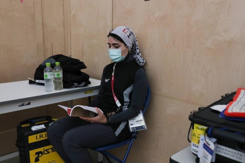 من قبل از هر مسابقهای کارهایی مثل تصویر سازی، تمرینات تنفس، آهنگ های آرامشبخش و همانطور که در عکس میبینید کتاب خواندن را انجام میدهم که به آرام شدن و تمرکز بیشترم کمک میکند. من همیشه قبل از مسابقات کتاب میخوانم و معمولا سراغ کتاب های روانشناسی میروم. کتابی که در توکیو خواندم "روحیه برنده" بود.
