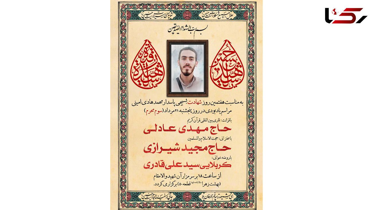 مراسم هفتم شهید محمدهادی امینی که سحرگاه چهارشنبه 13 مرداد امسال به فیض شهادت نایل شده بود با رعایت همه شیوهنامههای بهداشتی عصر پنجشنبه 21 مرداد سال جاری در تهران برگزار خواهد شد.
