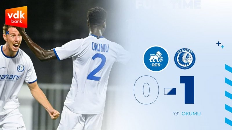 تیم فوتبال خنت با تک گلی که اوکومو در دقیقه ۷۳ به ثمر رساند، در زمین ریگاس لیتوانی به برتری یک بر صفر دست یافت تا با پیروزی ۳ بر ۲ در مجموع دو مسابقه به مرحله نهایی لیگ کنفرانس اروپا راه یابد و حریف راکو لهستان شود.