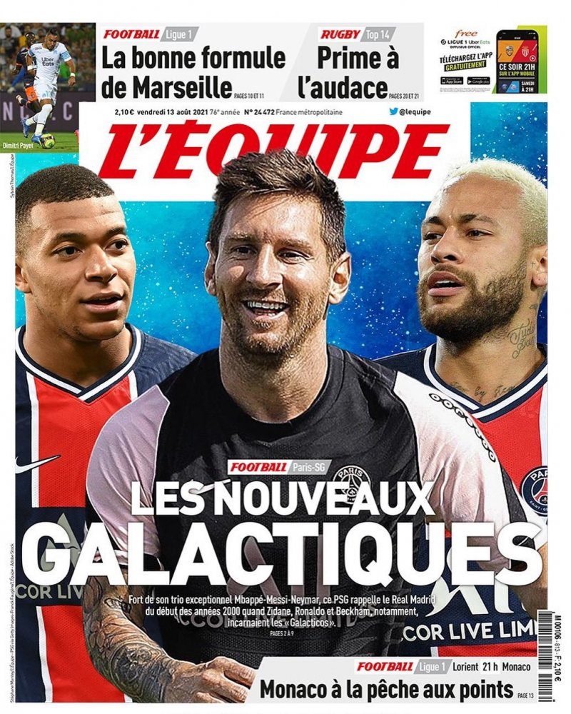 عکس مسی، امباپه و نیمار روی جلد کار شده با عنوان:« کهکشانی های جدید.» اکیپ اطمینان دارد که امباپه ماندنی است و مثلثی مخوف را کنار مسی و نیمار شکل خواهد داد.