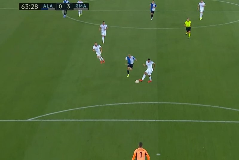دقایقی پس از به ثمر رسیدن سومین گل رئال مقابل آلاوس، اشتباه مدافع و دروازه بان این تیم، یک گل برای حریف به همراه داشت.