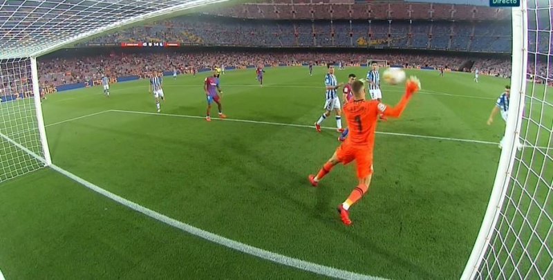 نخستین گل فصل بارسا را جرارد پیکه روی سانتر ممفیس دیپای و با ضربه سر در دقیقه 19 به ثمر رساند تا بارسا به حق خود رسیده باشد. آبی اناری ها پیش از این گل نیز شانس های زیادی داشتند.