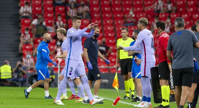 مدافع ارزشمند بارسا در یک نبرد هوایی با بِرِنگر بازیکن بیلبائو دچار مصدومیت از ناحیه پای راست شد و دیگر نتوانست به کار ادامه دهد.
