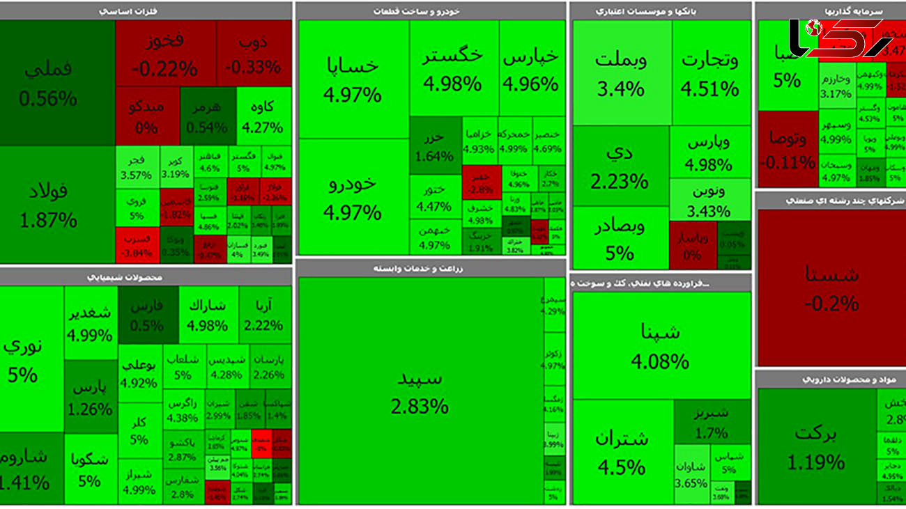 نمادهای فارس ، شتران و خودرو بیشترین اثر مثبت را بر حرکت شاخص داشتند و شستا ، وغدیر و میدکو مانع از رشد بیشتر شاخص بورس شدند.رشد قیمت در گروه خودرویی ها نیز محسوس است.