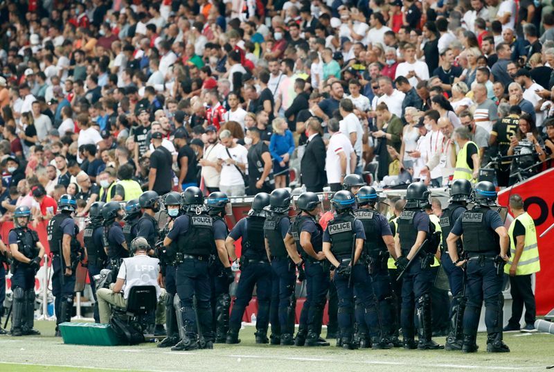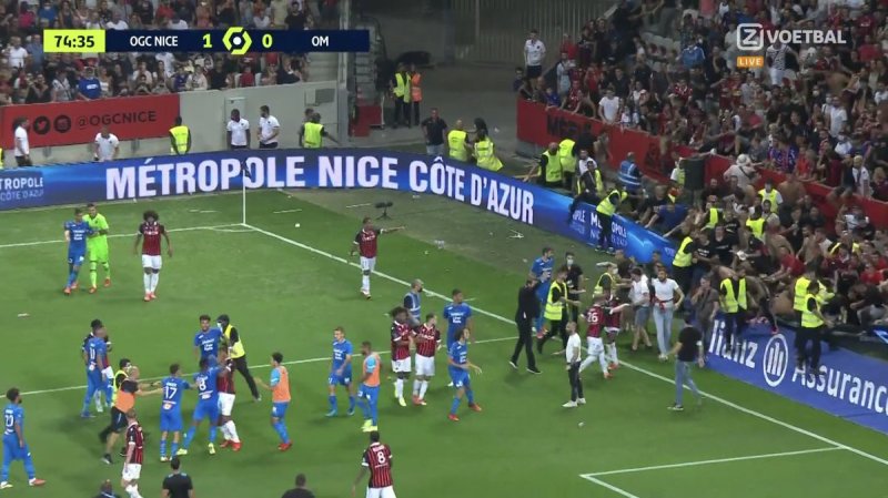 تیمهای المپیک مارسی و نیس در چارچوب هفته سوم لیگ فرانسه در ورزشگاه آلیانز ریویرا شهر نیس به مصاف هم رفتند؛ تیم میزبان با گل دقیقه 49 کاسپر دولبرگ از مارسی پیش افتاد. بازی دو تیم در حالی که به دقایق پایانی خود نزدیک می شد، به دلیل رفتار خشونت آمیز هواداران تیم میزبان و هجوم آوردن آنها به زمین، متوقف شد.