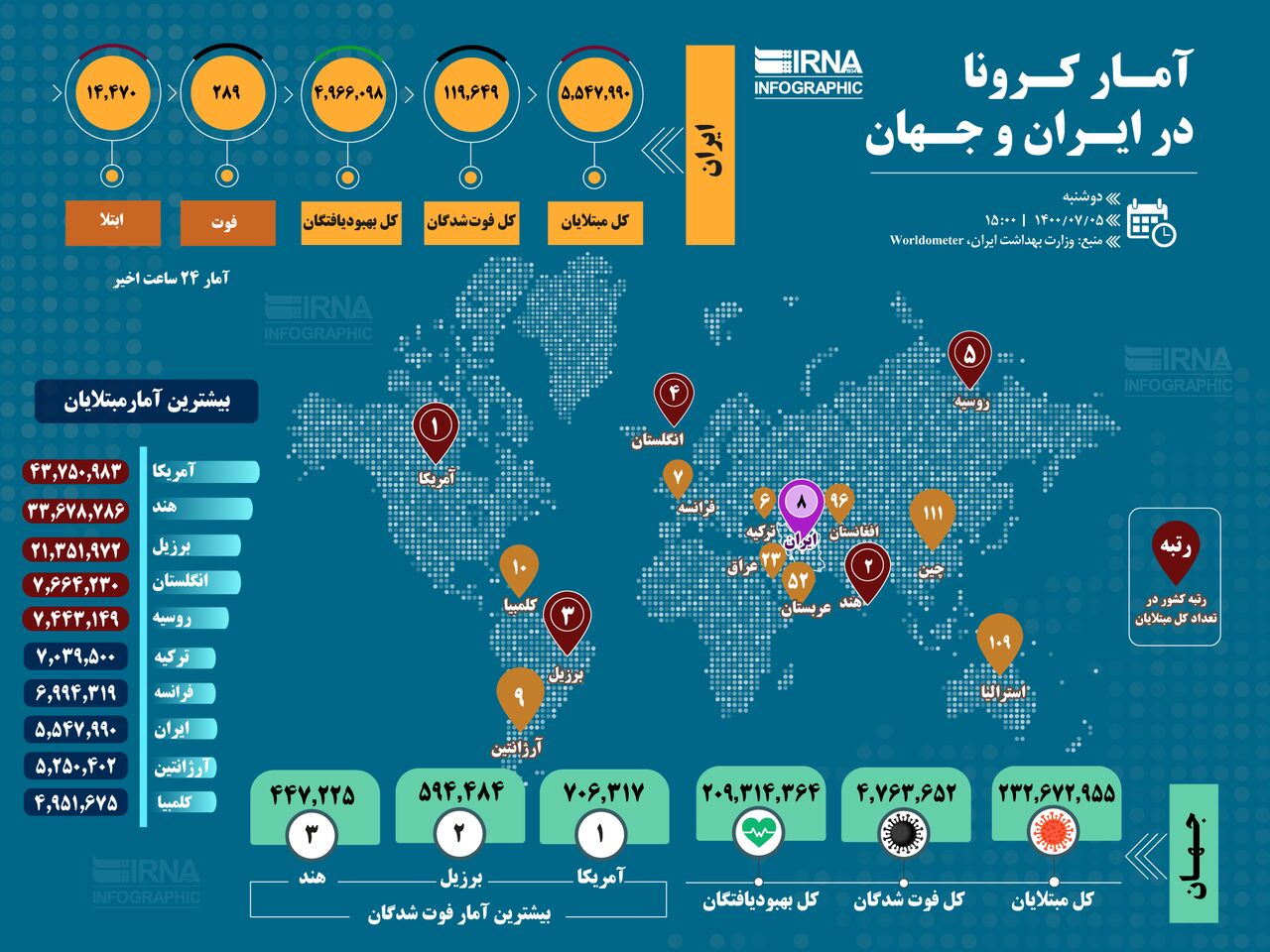 آمار کرونا در ایران و جهان+ اینفوگرافیک
