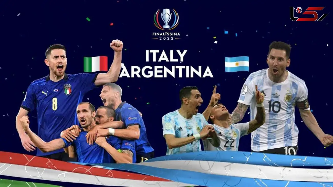 به گزارش رکنا، درچارچوب مسابقه فینالیسیما از ساعت 23:15 امشب تیم های ملی ایتالیا و آرژانتین با هم مصاف می دهند.