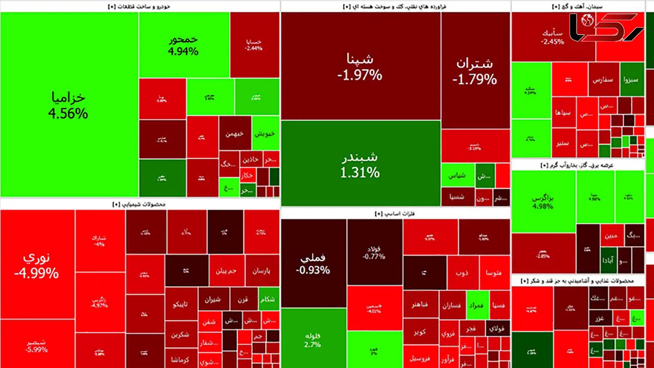 نمادهای نوری، میدکو، بوعلی، فولاد و فملی بیشترین اثر منفی و نماد شبندر بیشترین اثر مثبت را بر بورس گذاشتند.