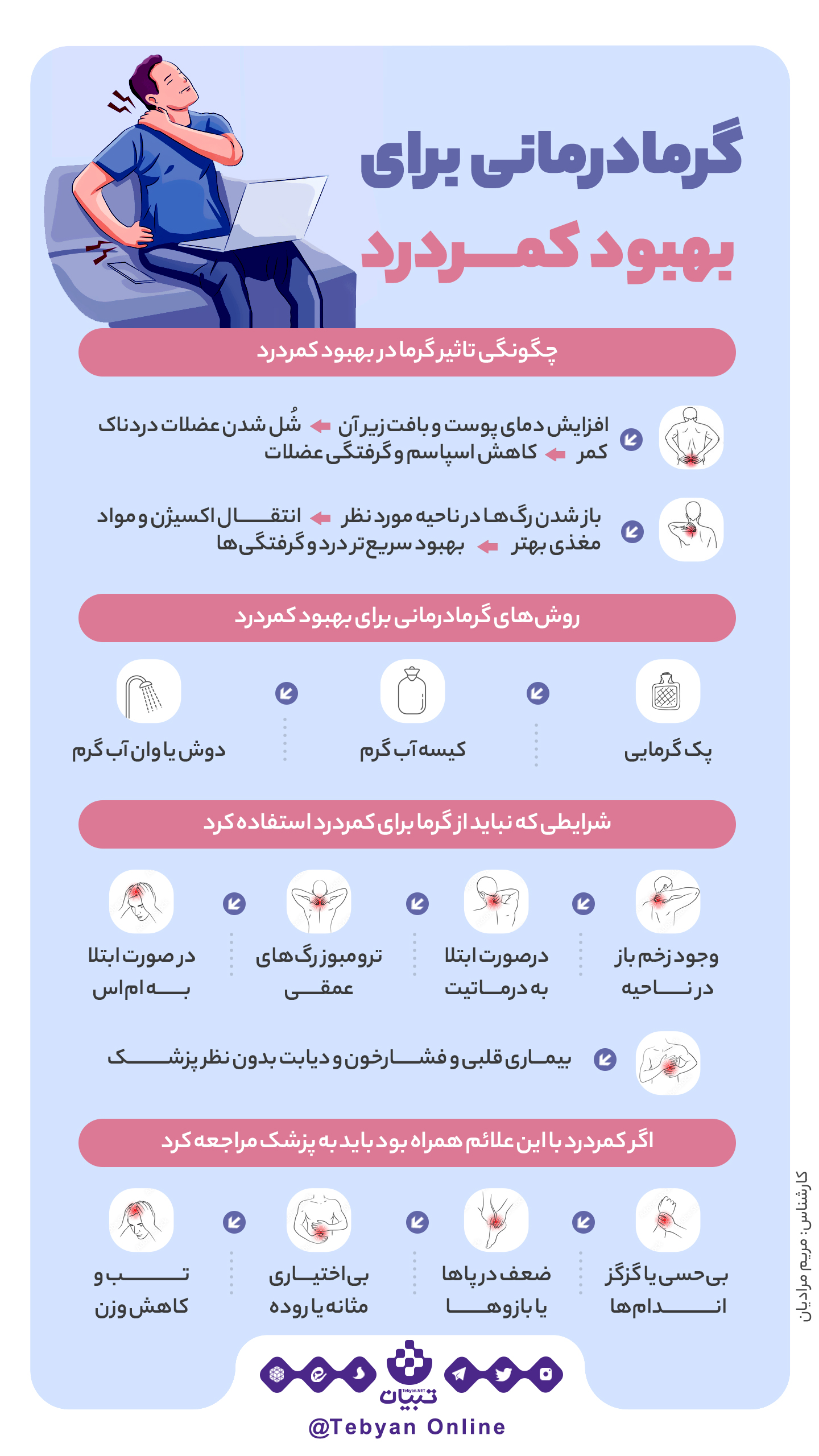 گرمادرمانی برای بهبود کمردرد+ا ینفوگرافیک