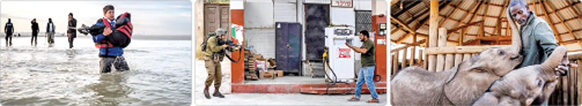 همچنین در عکسی دیگر سامبورو، نگهبان فیلها، با بچهفیلها در پناهگاه فیلهای رتتی در منطقه حفاظت از حیات وحش Namunyak بازی میکند. این پناهگاه ، پناهگاه بچهفیلهای یتیم و رهاشده است. در دیگری، یک مهاجر، کودکی را در فرانسه بغل گرفته و تلاش میکند برای عبور از کانال مانش سوار قایق شود. از ابتدای سال تاکنون، بیش از ۳۳۵۰۰ نفر با عبور از یکی از شلوغترین خطوط کشتیرانی جهان که روزانه بیش از ۴۰۰ کشتی تجاری از آنجا عبور میکنند، از این مسیر خطرناک به سمت بریتانیا عبور کردهاند.