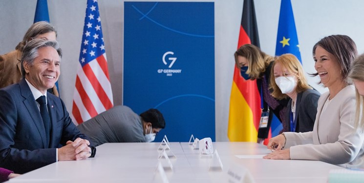 لبخند وزیر خارجه آمریکا در نشست وزرای خارجه گروه ۷ +عکس