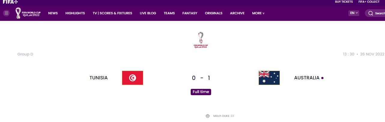 نتیجه نهایی بازی استرالیا و تونس در جام جهانی 2022 قطر +عکس