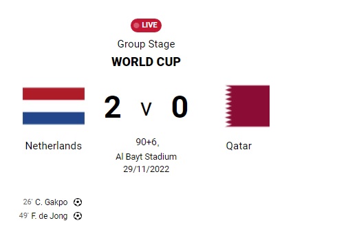 نتیجه نهایی دیدار هلند و قطر +تصویر