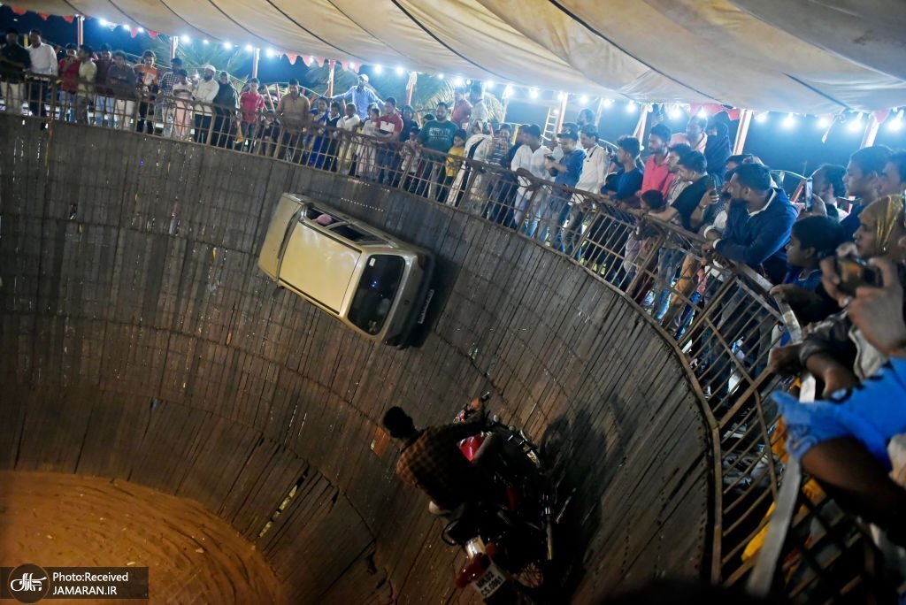شیرین کاری با ماشین روی دیوارهای «چاه مرگ» در هند + عکس