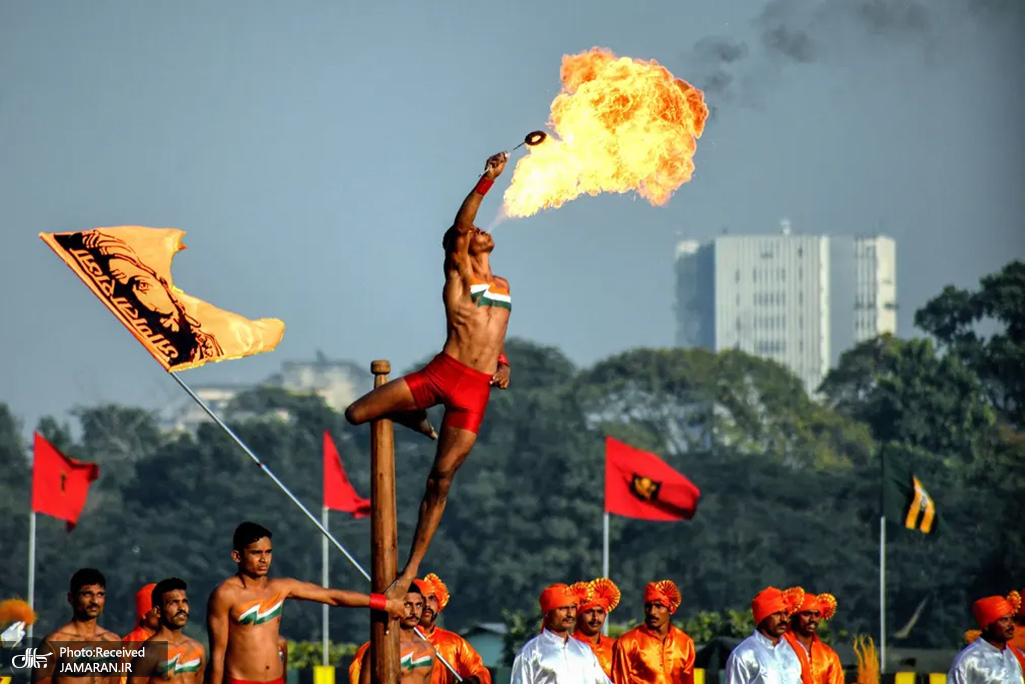 بدلکاری سربازان ارتش هند با آتش + عکس