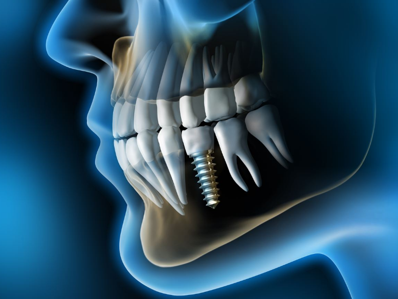 ایمپلنت دندان، جایگزینی طولانیمدت برای دندان ازدسترفته است. ایمپلنت یک پیچ تیتانیومی است که جراح دندانپزشک آن را بهجای ریشه دندان اصلی به استخوان فک میپیچد. در طی دوره بهبودی، ایمپلنت و استخوان فک با هم ترکیب میشوند و پس از جوش خوردن، ایمپلنت میتواند از یک دندان مصنوعی یا تاج پشتیبانی کند. فواید ایمپلنتهای دندانی، عبارتند از: