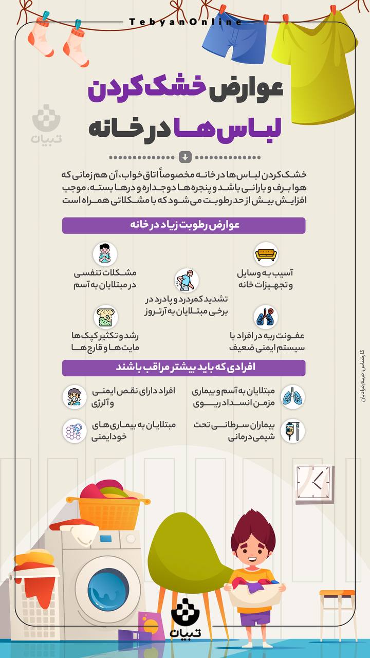 عوارض خشک‌کردن لباس‌ها در خانه+ اینفوگرافیک