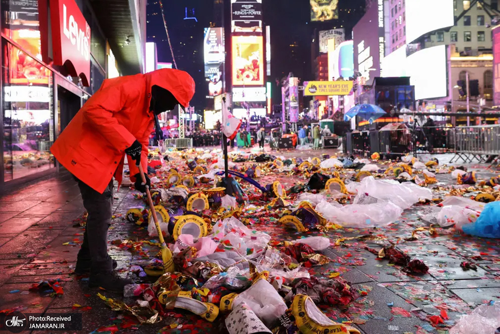 کارگری در حال تمیز کردن نیویورک پس از شب سال نو + عکس