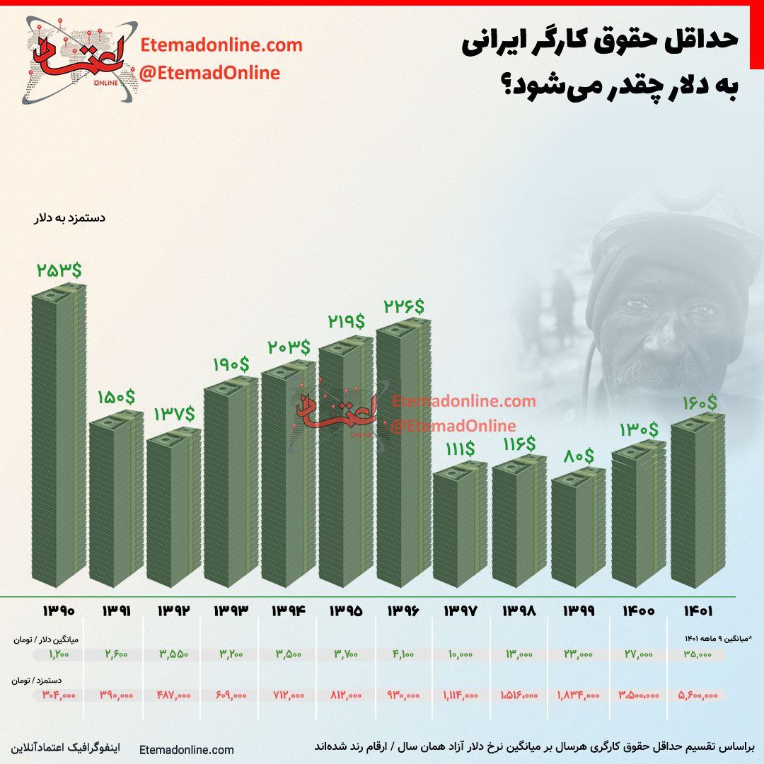 حداقل حقوق کارگر ایرانی به دلار چقدر می‌شود؟ + عکس