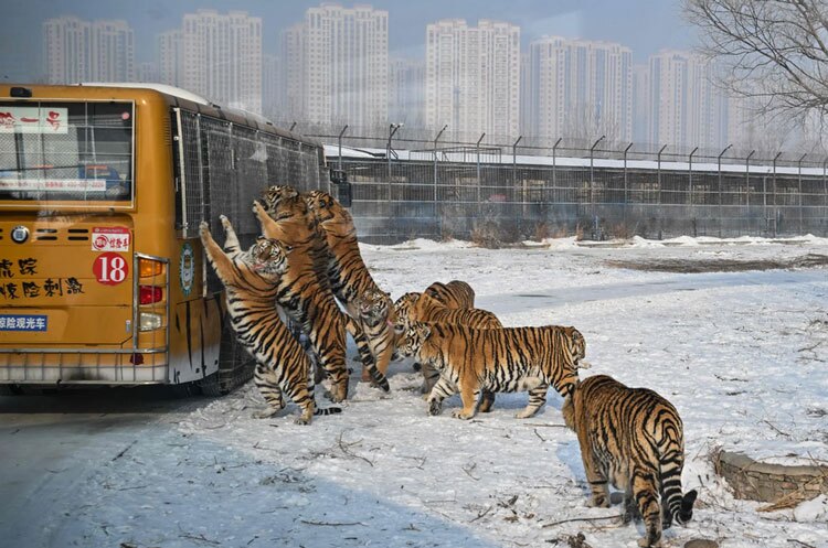 استقبال ببرهای سیبری از گردشگران + عکس