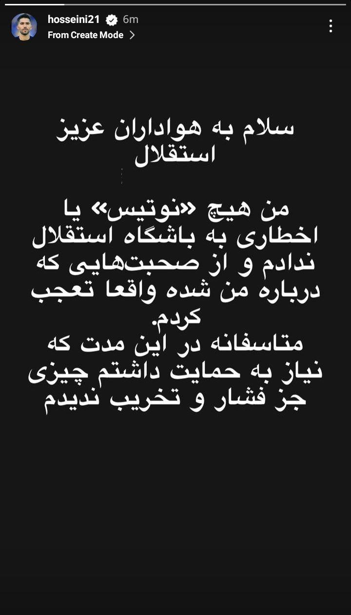 استوری کاپیتان استقلال در واکنش به صحبت‌های مدیر عامل +تصویر