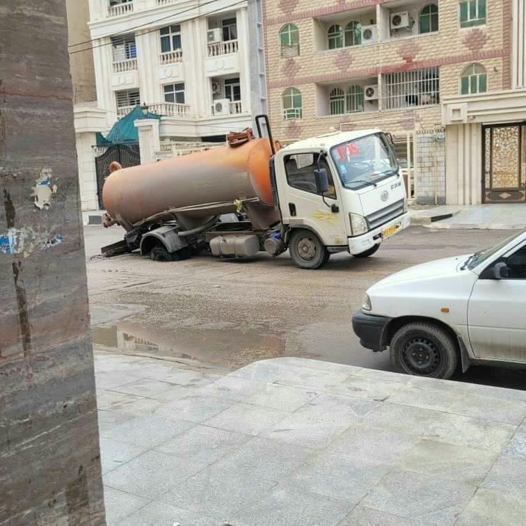 سقوط کامیونت در گودال های خیابانی اهواز! + عکس