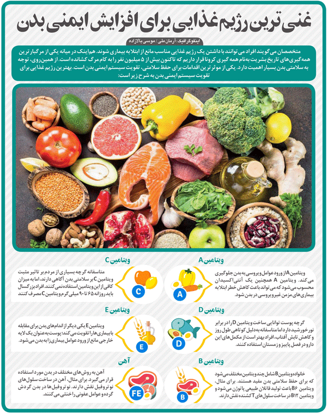 غنی‌ترین رژیم غذایی برای افزایش ایمنی بدن + اینفوگرافیک