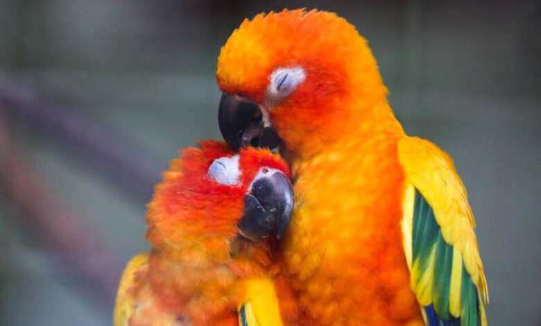 دو طوطی زیبا در باغ جانوری یانگون در میانمار + عکس