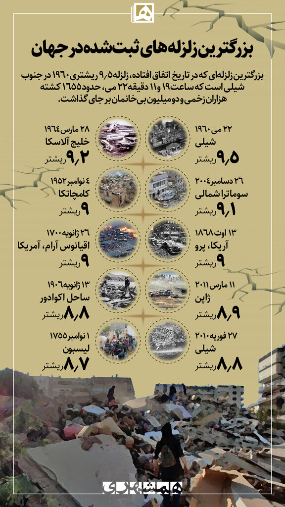 بزرگترین زلزله‌های ثبت شده در جهان+ عکس