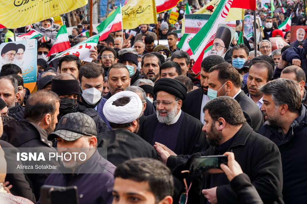 بوسه بر گونه رئیس جمهور در راهپیمایی 22 بهمن + عکس