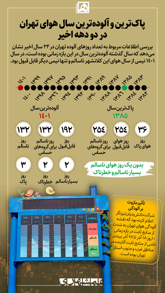 اینفوگرافیک | پاک‌ ترین و آلوده‌‌ترین سال هوای تهران در دو دهه اخیر
